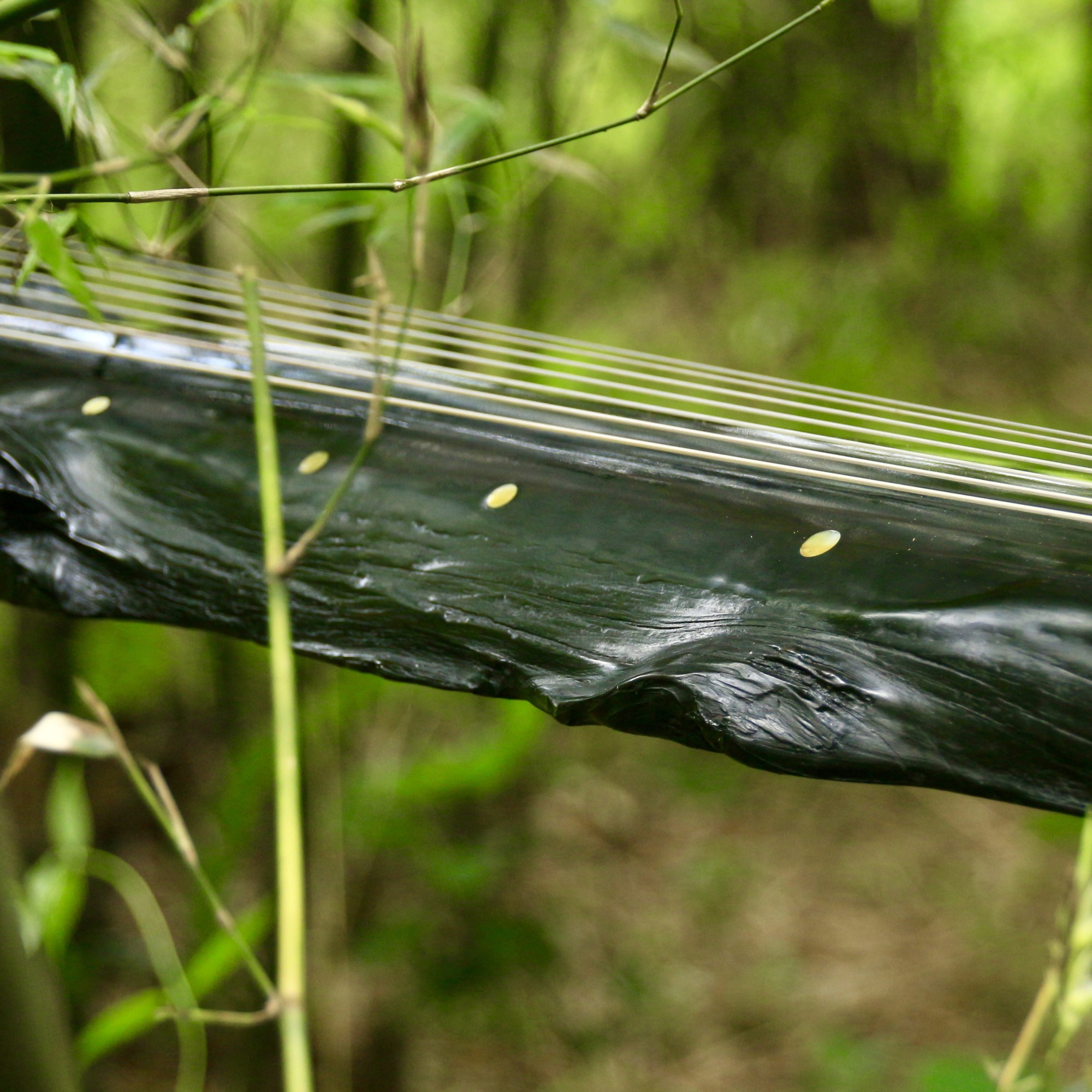 此琴目前收藏於紫雲古琴斲制技藝坊,於2017年成琴。隨型琴款,杉木面板,無底板,冠角化繁為簡只留龍齦,蚌貝鑲徽。為保留其返璞歸真形態,特只在弦路下作灰胎保護,木部只作擦漆處理保護,因此琴身在強光之下透出若隱若現之暗紅杉木紋。
