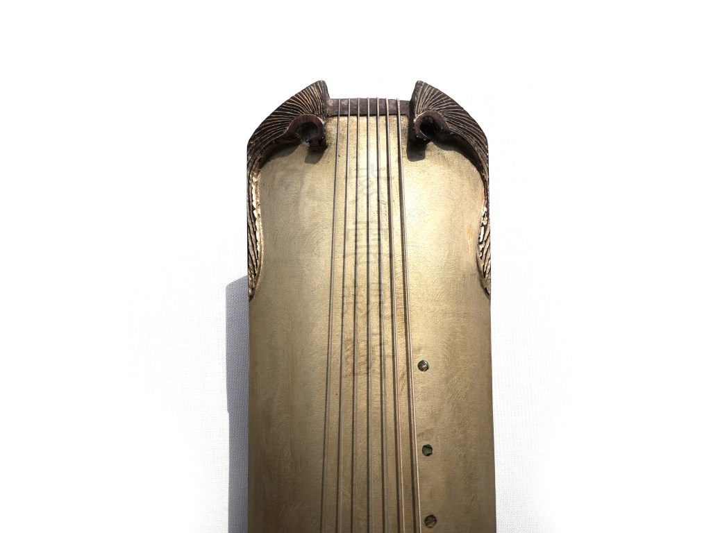 琴長 117 cm,琴頭肩尾寬 20-16-14 cm,弦長 111 com。鋼絲相兼琴,取音輕易靈動,音色穿透性強且雄渾有力,三分鼙鼓七分金石音,七弦十三徽各部散、按、泛表現均衡圓融無礙,音色寬宏遼闊松透自然,潛沉有力。