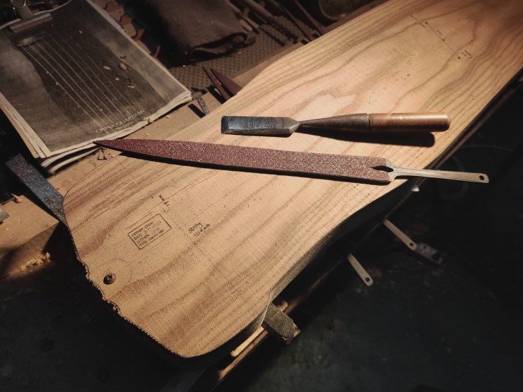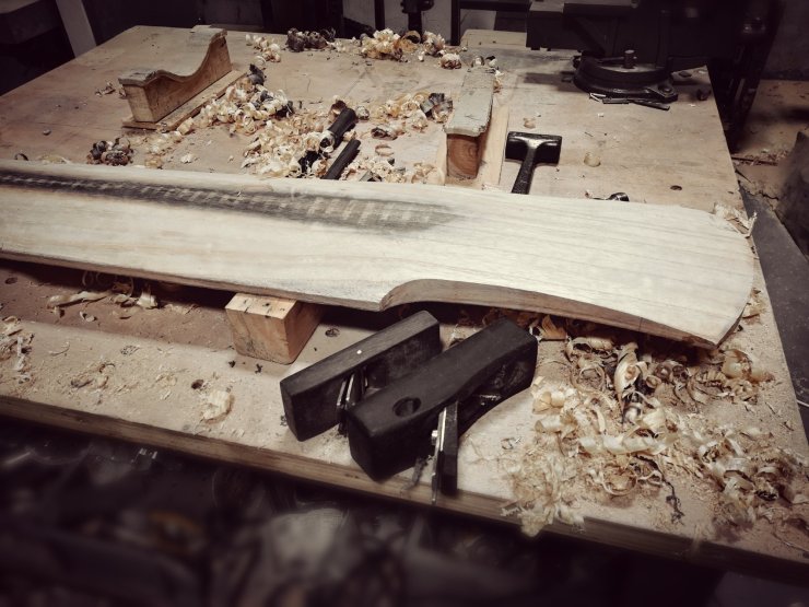 preliminary soundboard carving