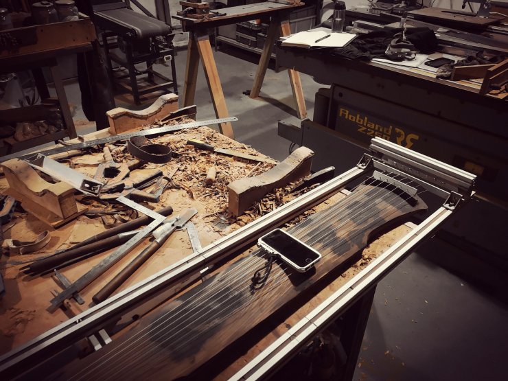 而底板的修型則需要留有一定的餘地給後期的細修形態氣質,更需要針對琴體整體光影過渡而有所微調。至於琴底選材以及工藝會決定琴底這第一步工藝發生相當大的工序性調整。