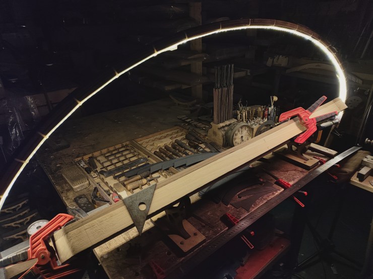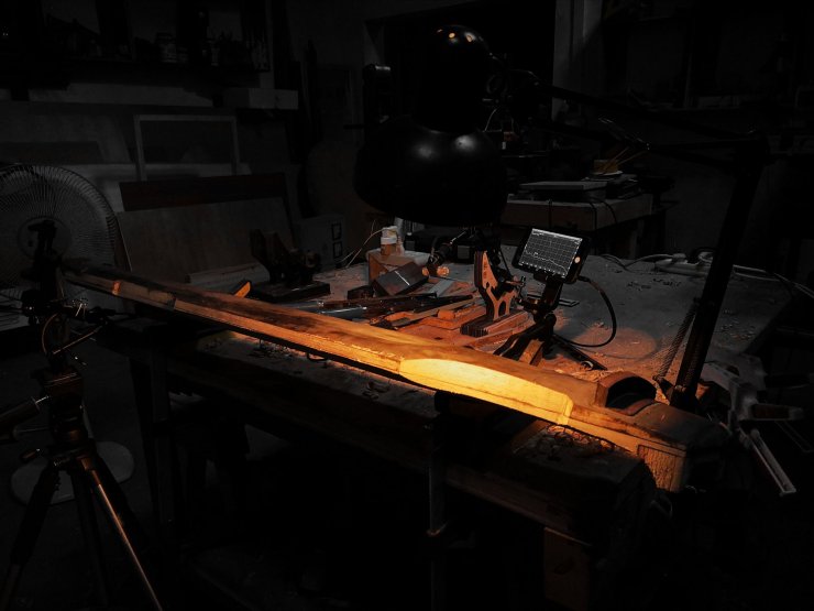 經過數月乃至寒暑的靜置後,琴胚就會發生一定量的自然扭曲現象。而我們所需要做的就是定期監測它與氣候或焓熵之間的微妙變化,作出扭曲誤差的標記並判斷出合適的時機進行誤差修正。