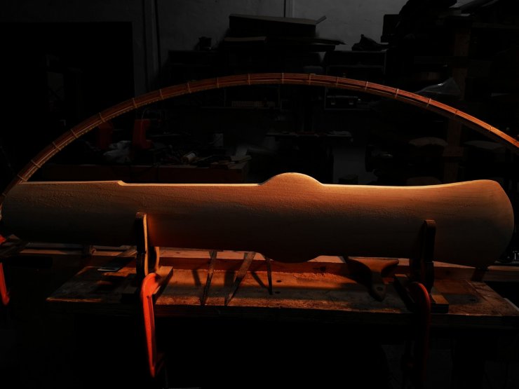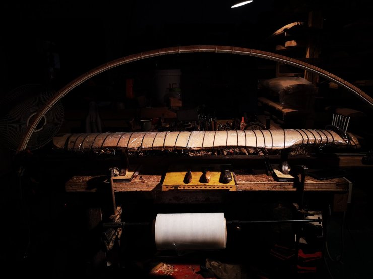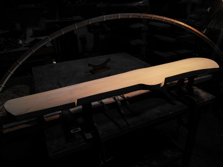 琴面的弧度決定了一張琴的聲音、手感、氣質,就在切割成型以後會因應設計和審美趨向而初步確定其琴面弧度。