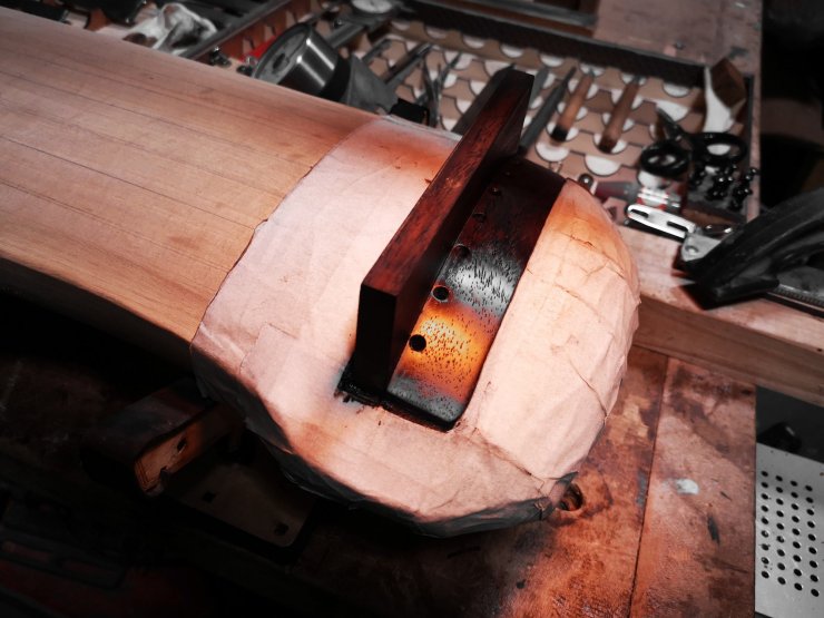 而對於常規木胚裹佈的操作上,這一步則是微調琴體裹佈前後的邊棱線以及貼合度,對於部分琴師而言此處更是江海之深。