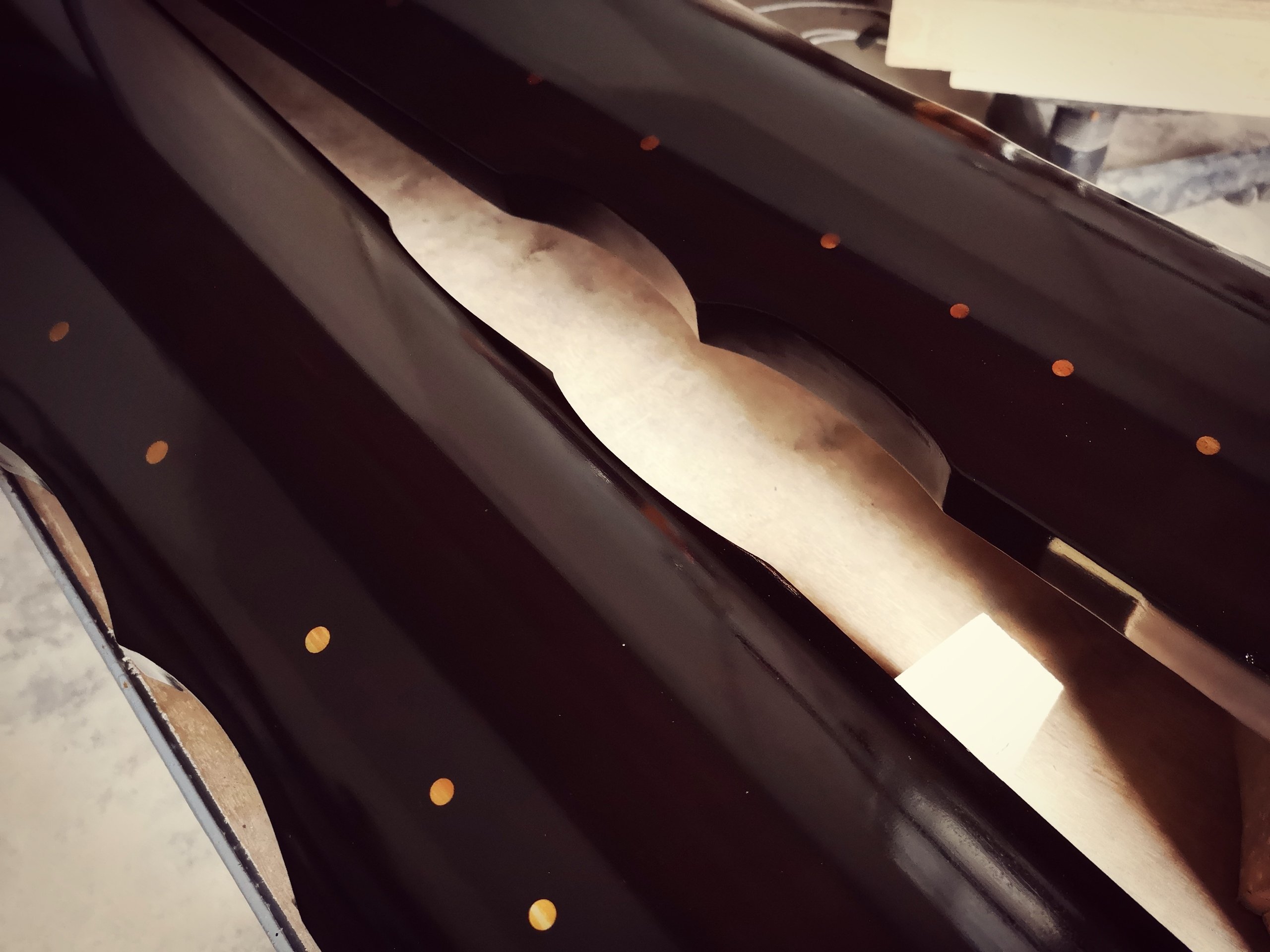 日以繼夜的幾天加班終於告壹段落,爭取了壹個星期調音,等漆幹透再繼續往高目數打磨。 另壹邊開始抽空挑鮑魚碎打粉。 明天早點上山打掃工作室準備調音儀式。