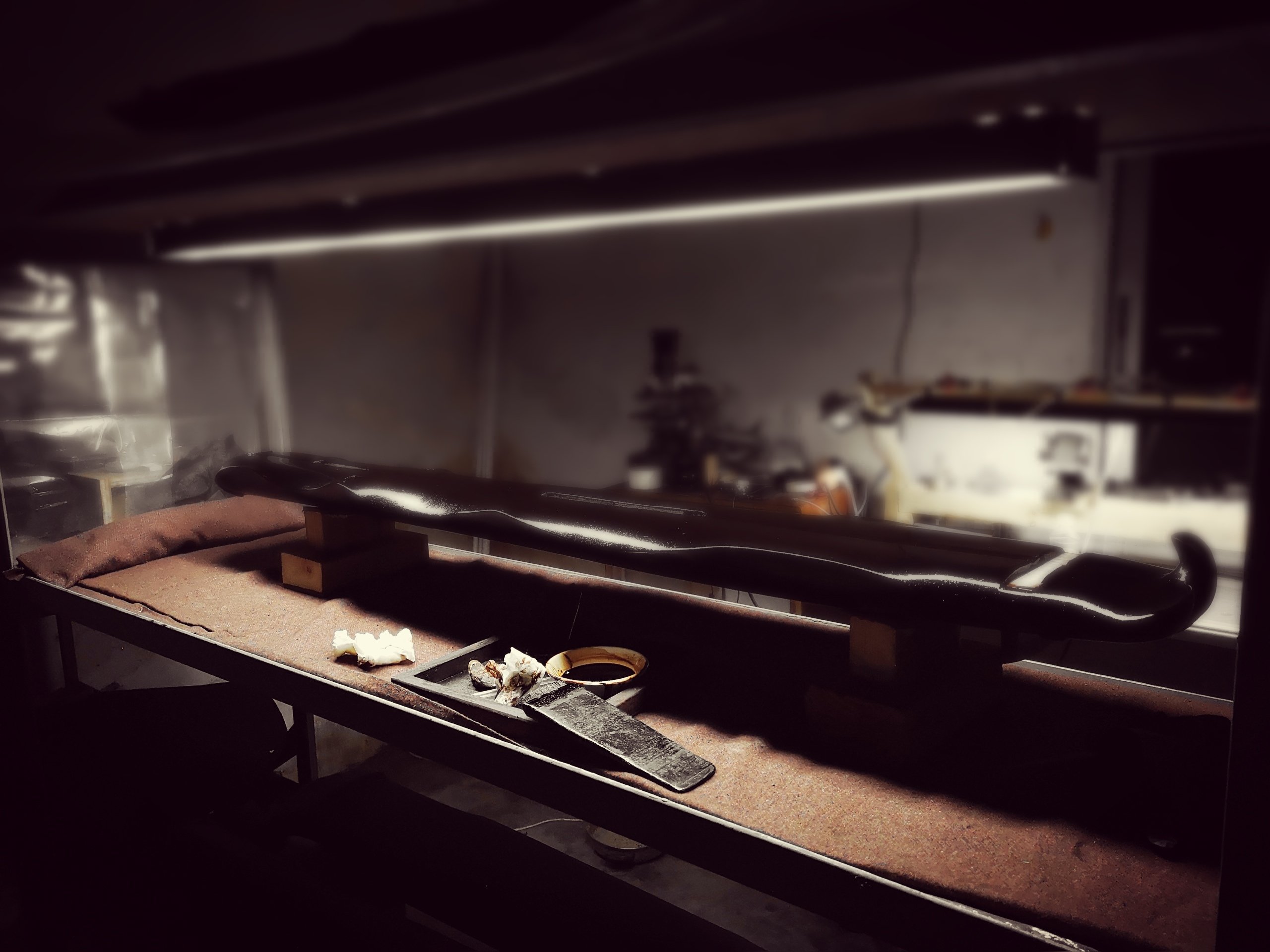 蕉葉琴的漆越來越豐滿了,開始安排做葉脈鱗。