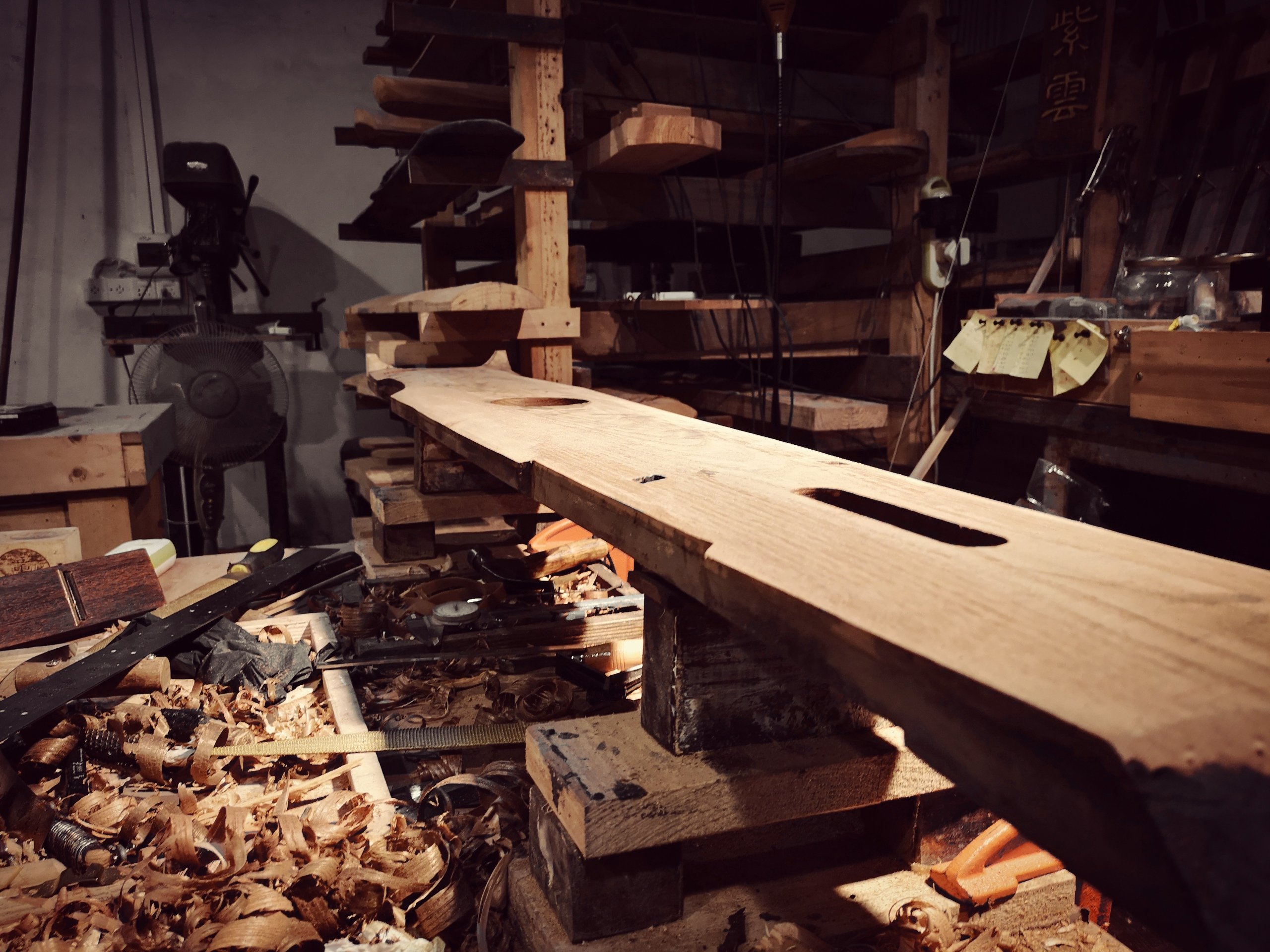 今天工作,一共是四張琴,修的是琴底弧面,“邊牆”決定了整體視覺。當然,琴的整體厚度在適當的範圍內,通過邊牆的合理壓縮,可以達到“標緻”的外觀。