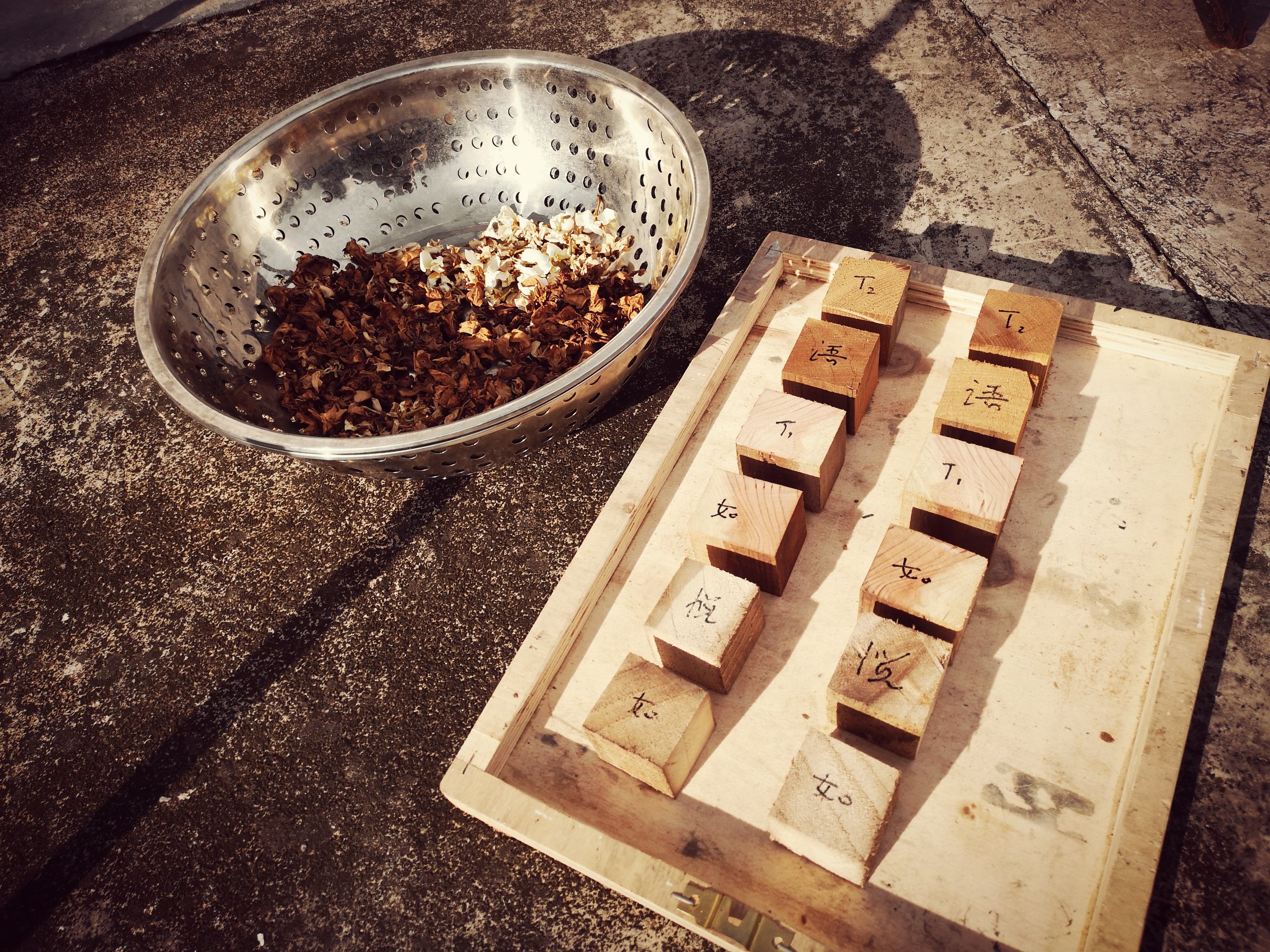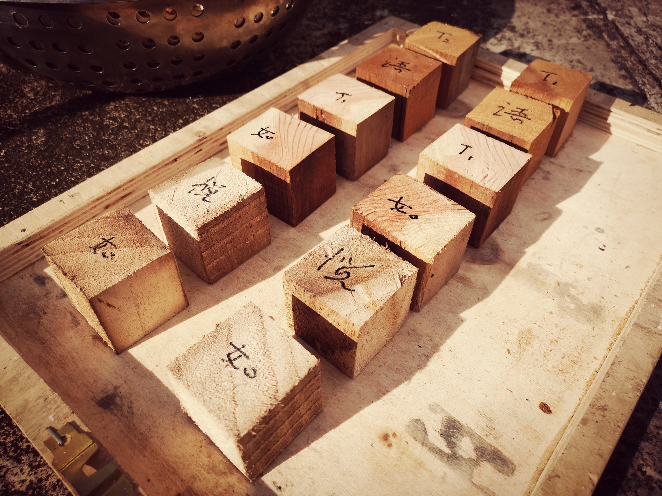 然後下午就是晾曬“小木塊”,這是為幾張琴的“護軫”做前期準備,大概明天就可以粘合了,然後進入細修。