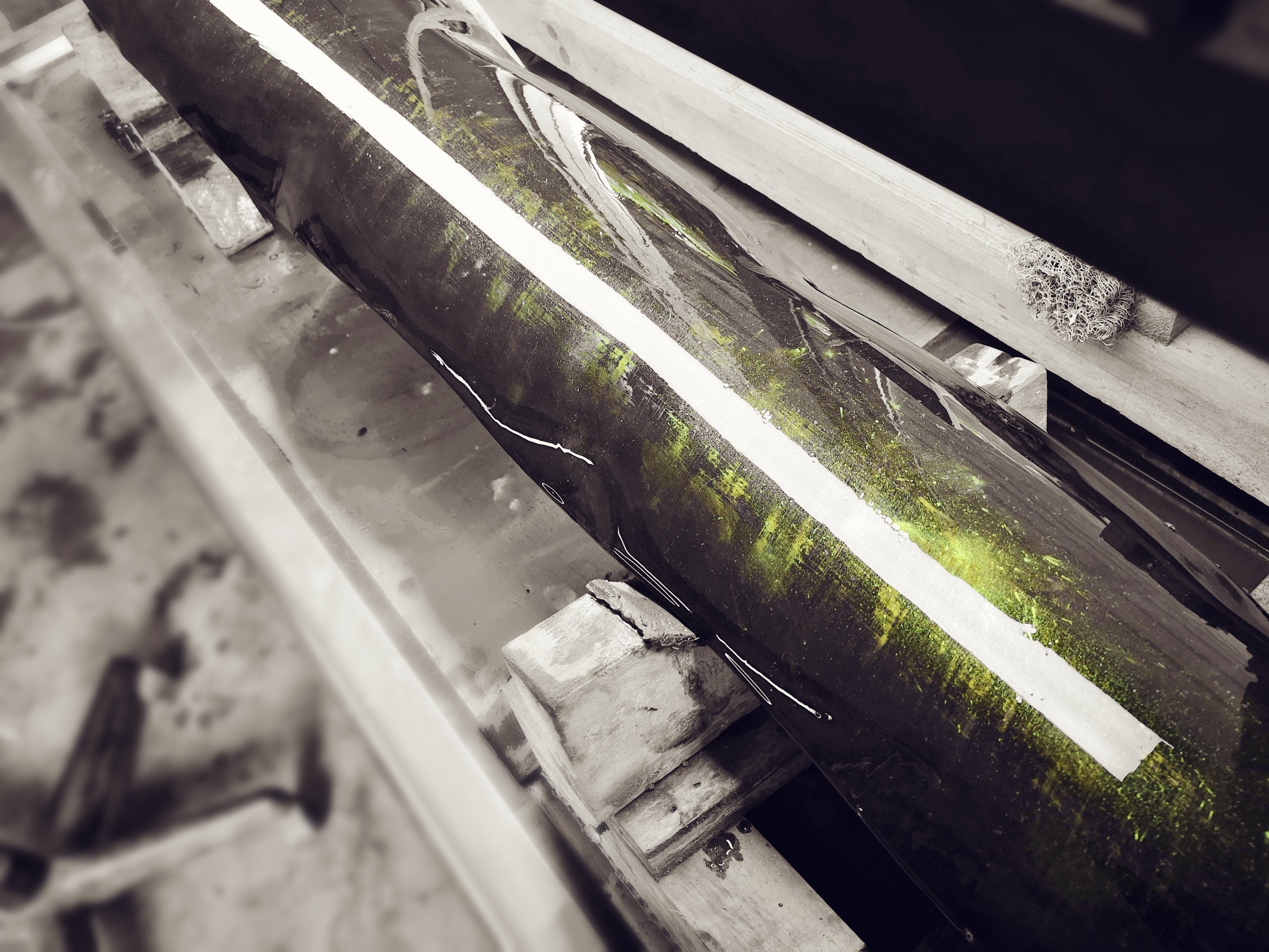 常規繪畫是以顏料和筆刷,逐層疊加而成。而我的手法卻是以“漆”和“打磨”。这一幅画的層次感以及光影梯度,全憑颠倒过来的“磨顯”方式表現。雖然與水彩類似,但卻又是“避重就輕”………