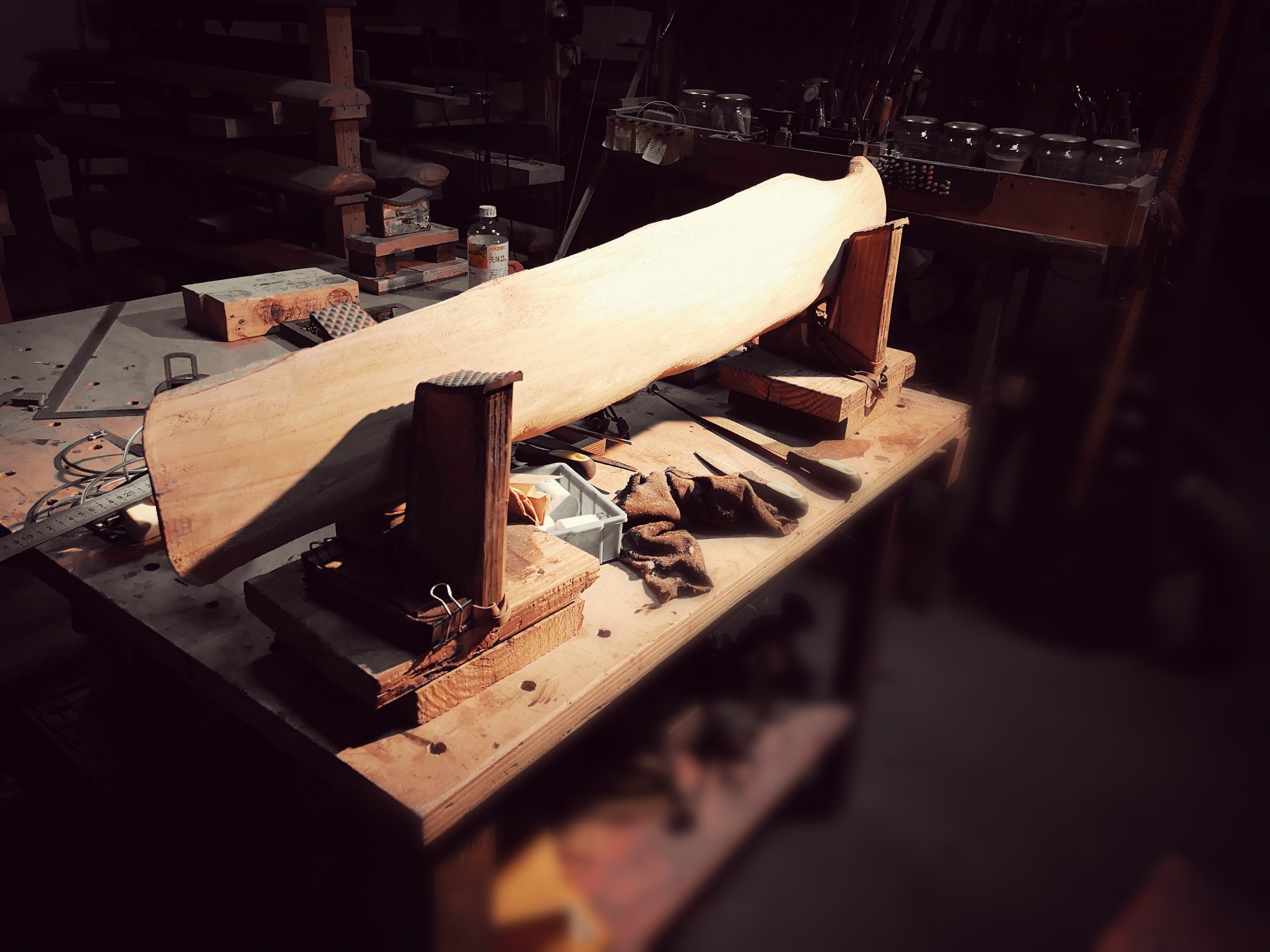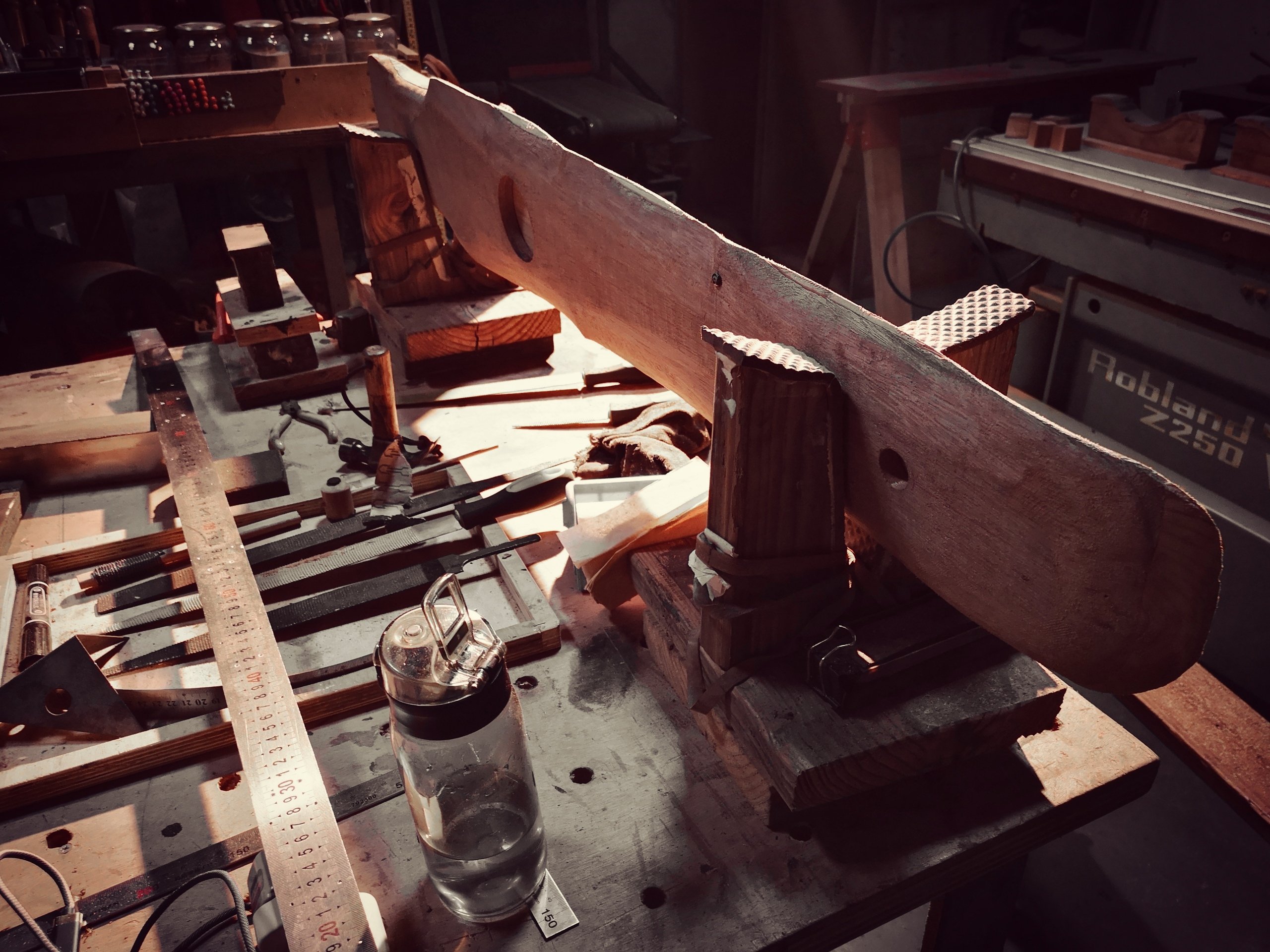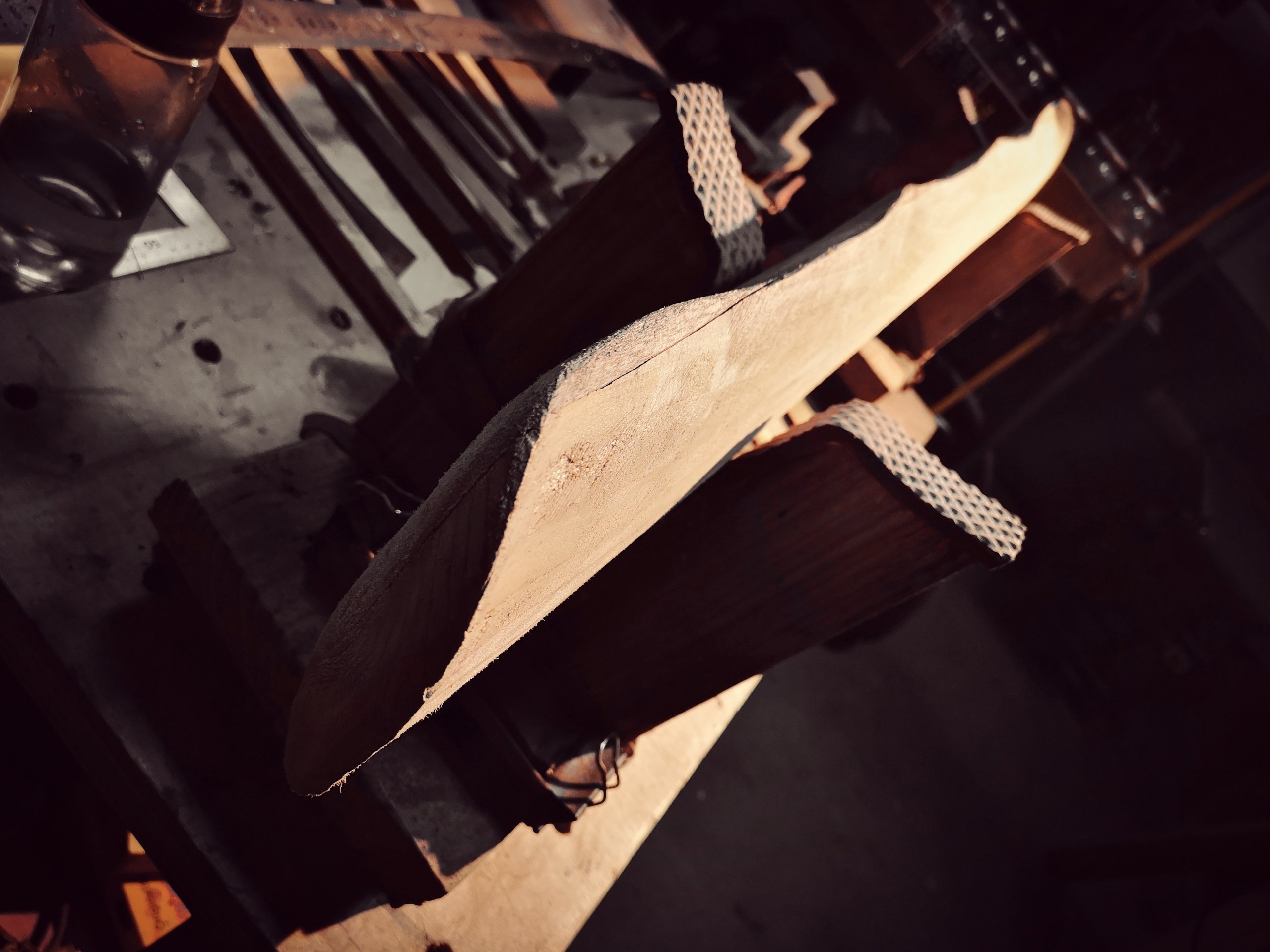 至於這張展會用的“超薄蕉葉琴”,至今也未進一步安裝配件,依然徘徊在修型,也唯有在我閑時拿出來稍微的摸摸修修,等待時機的成熟。