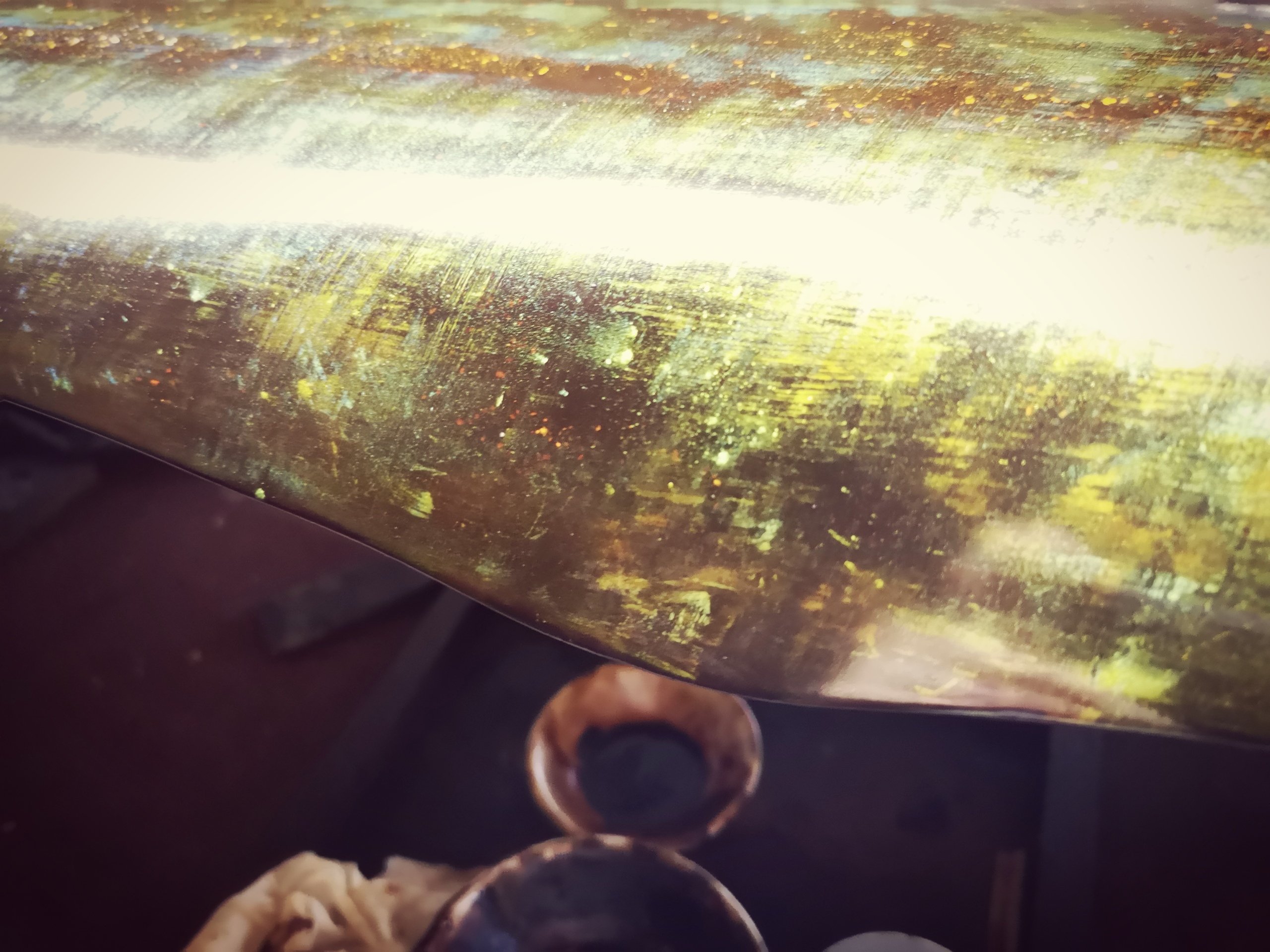 這次給蕉葉提早打磨,擦臨時的保護漆,待雅集過後再重新磨掉再來……其實也挺想推掉這次雅集,畢竟我難以抽身,今天檢查了幾位琴友的定做檔案書,也已經有點怠慢他們了,一年過來,還剩下需要做漆這一步。