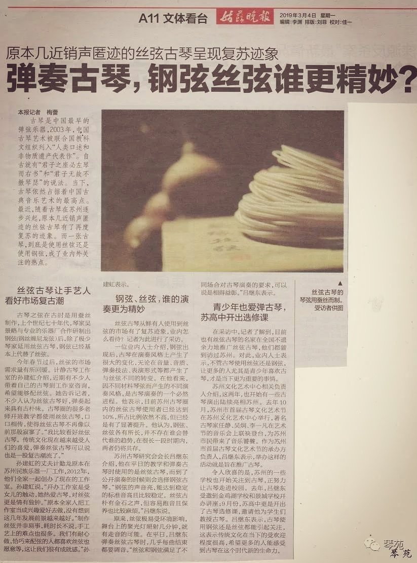 當下,古琴依然占據著中國古典音樂藝術的最高點。近年來,隨著古琴的復興,蘇州這個千年古城原本幾近銷聲匿跡的絲弦古琴也有了再度復蘇的跡象。