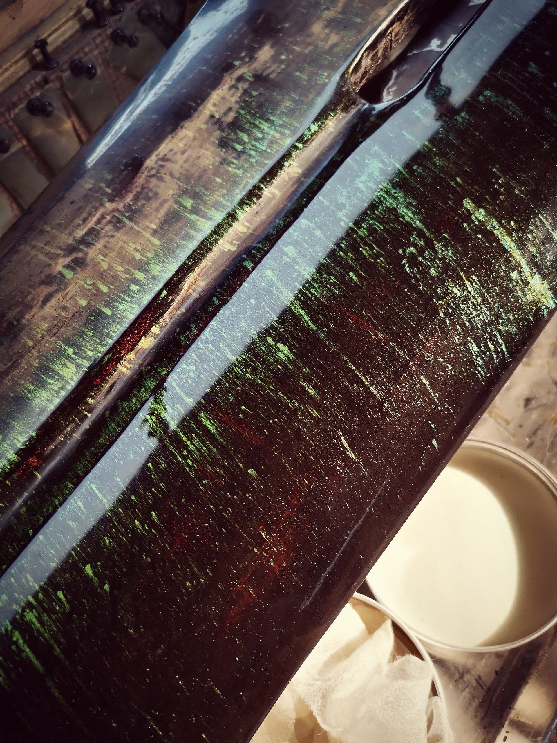 嗯,眼見另一張蕉葉琴也開始露出神氣了,很慚愧這段時間一直在趕琴事,拋光一事斷斷續續,但在今天也做到60%進度了,畢竟拋光非常“磨人”。