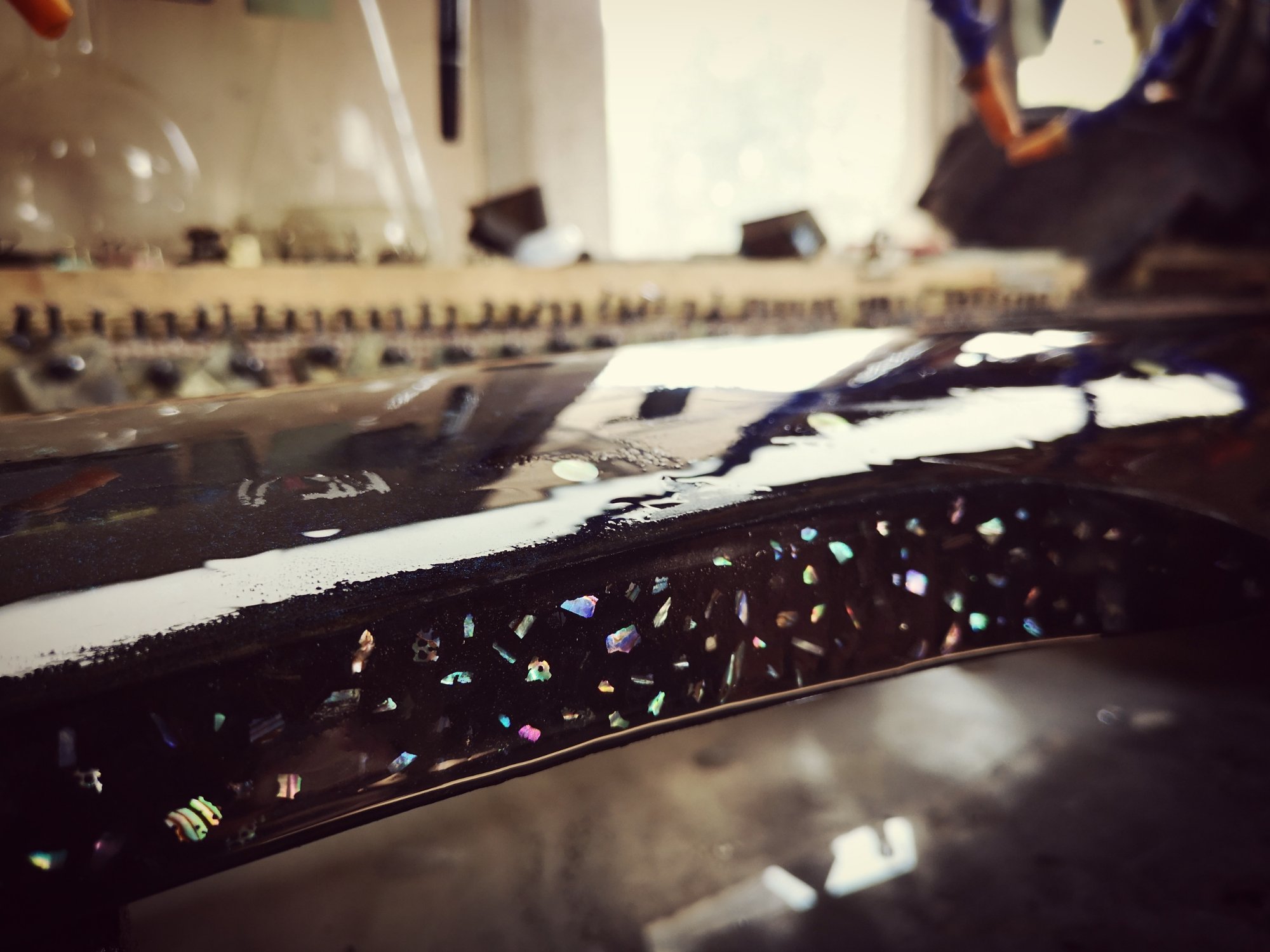 這是《玥》的“側邊鑲貝”工藝,雖還未封漆,但已經給人以一種清新個性的感覺。也許……做個漸變過度的遮罩更顯得深邃……