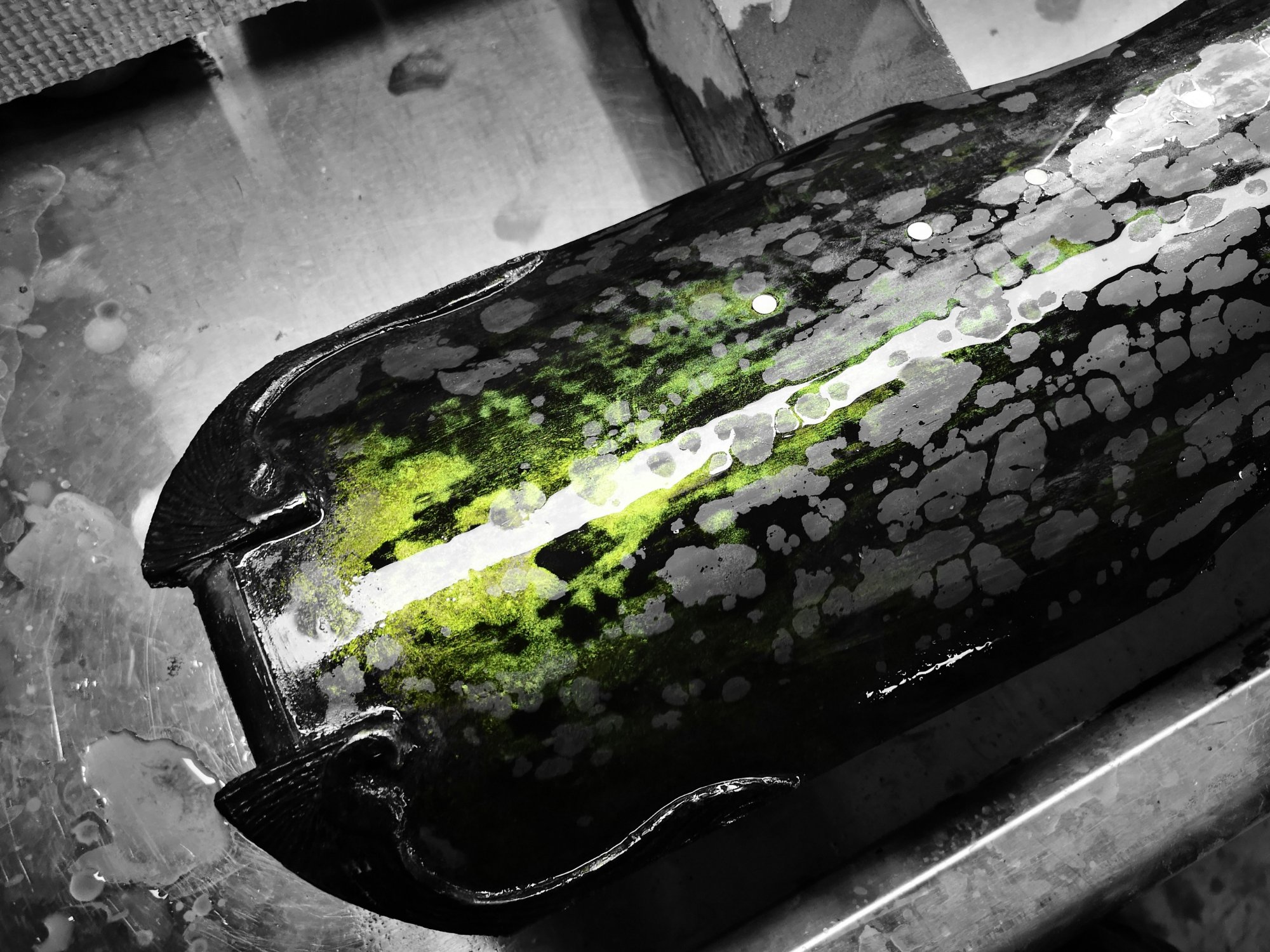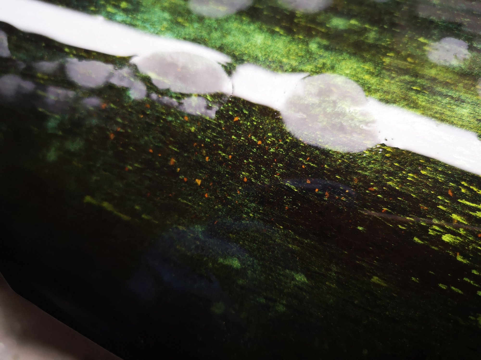 而這次只是琴面“上塗”而琴底面還是“灰地”,因為我不希望一次性“雙面涂”,而這樣容易“流漆淚”更有些細節很難兼顧,所以還是穩妥“按部就班吧”。