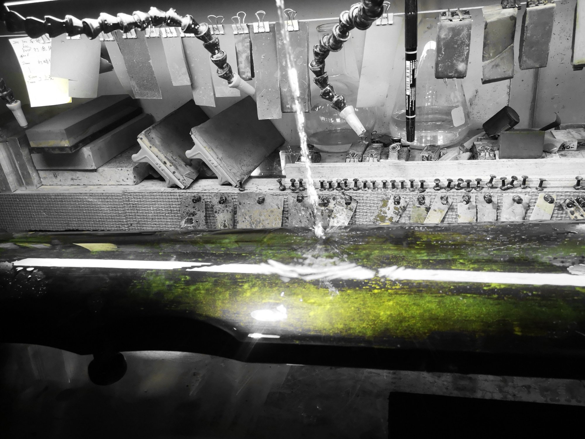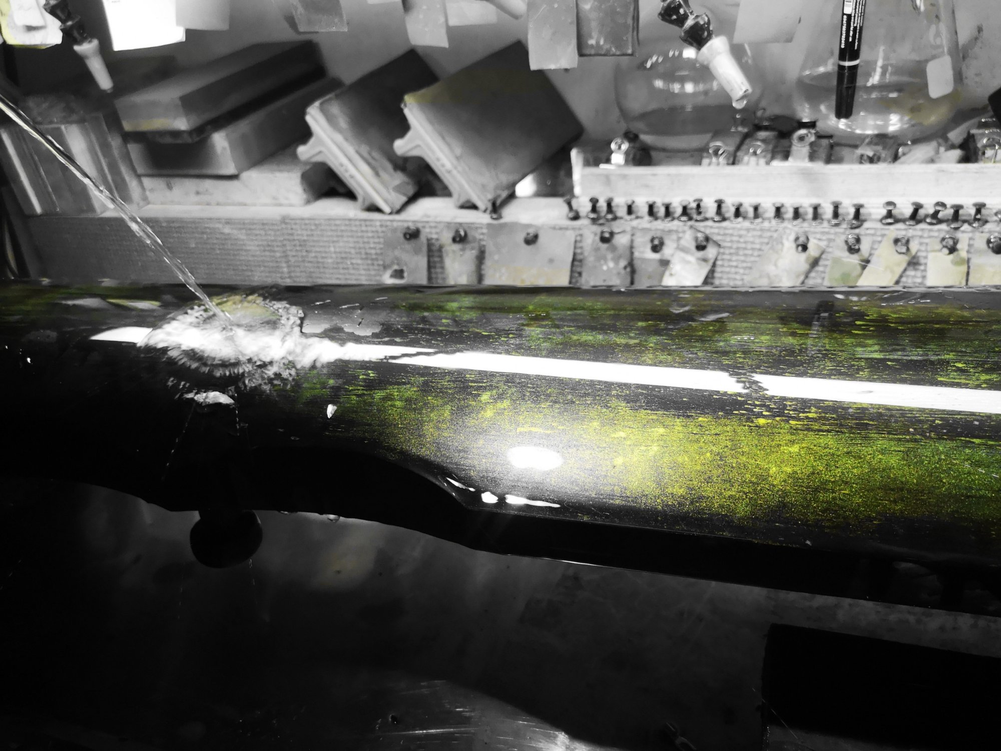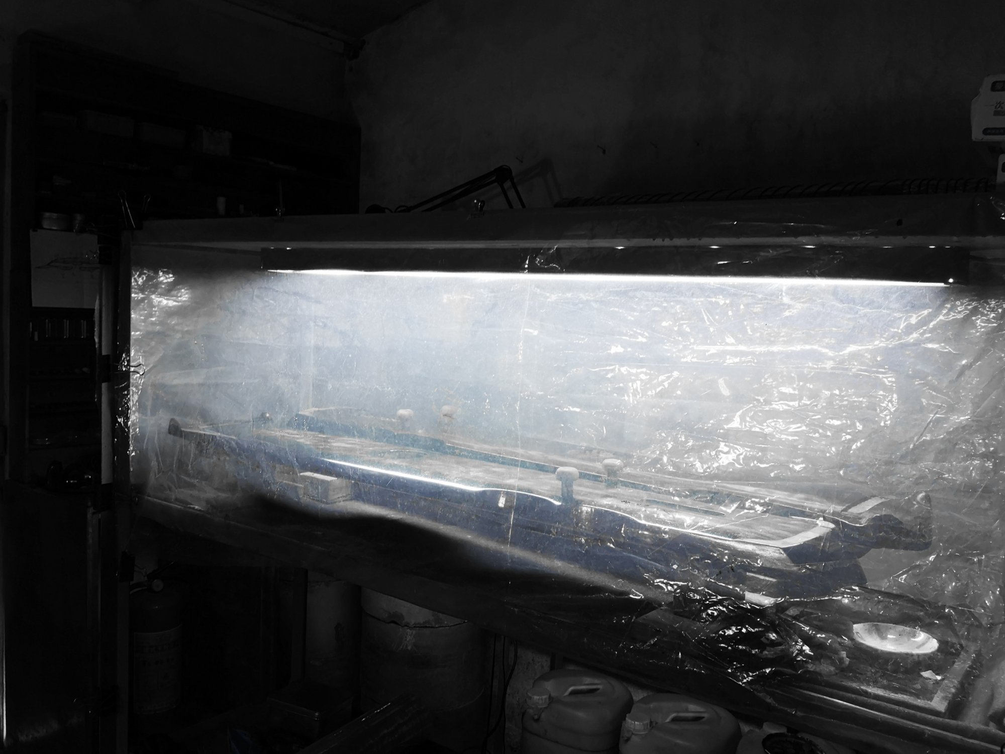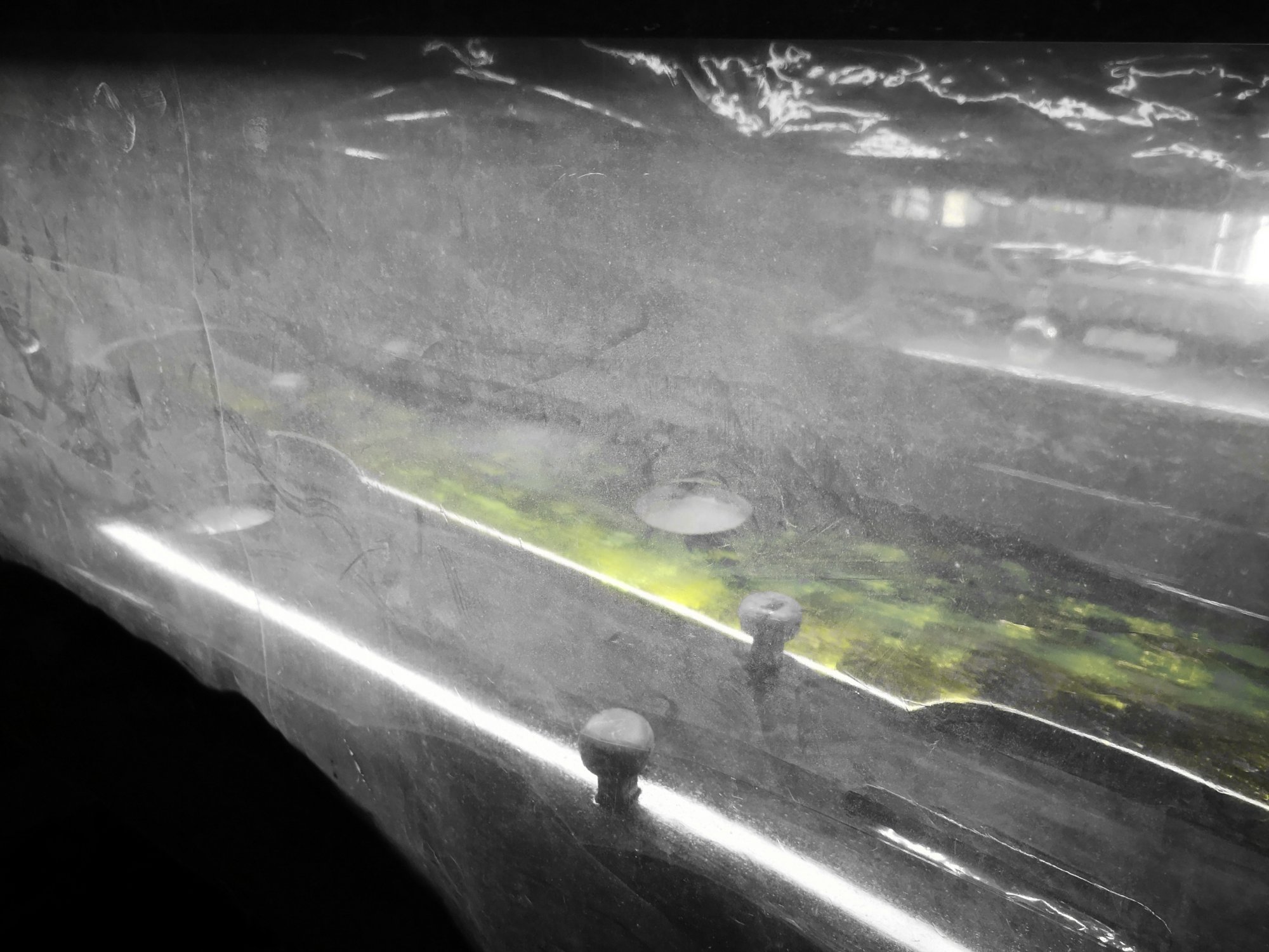 這是另一位琴友的星河琴,目前在做特殊的底面塗層,也算是試驗性製作,所用的是上一張自用琴的“餘料”,也就還較為貴重的真金粉混合物。