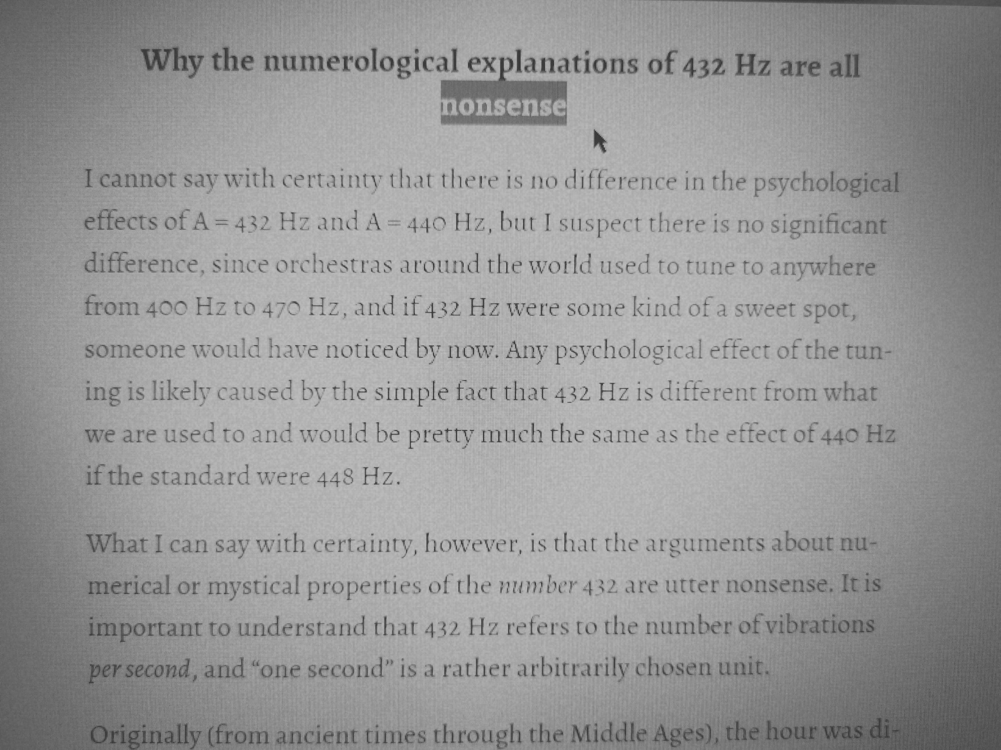 因此對於套用後現代的“430Hz”,那麽就會強差人意了,因此早在千百年前,古琴所傳承且默認的調音定音法,皆無“430Hz”說法,而是根據“律”,根據“泛音”進行校準。