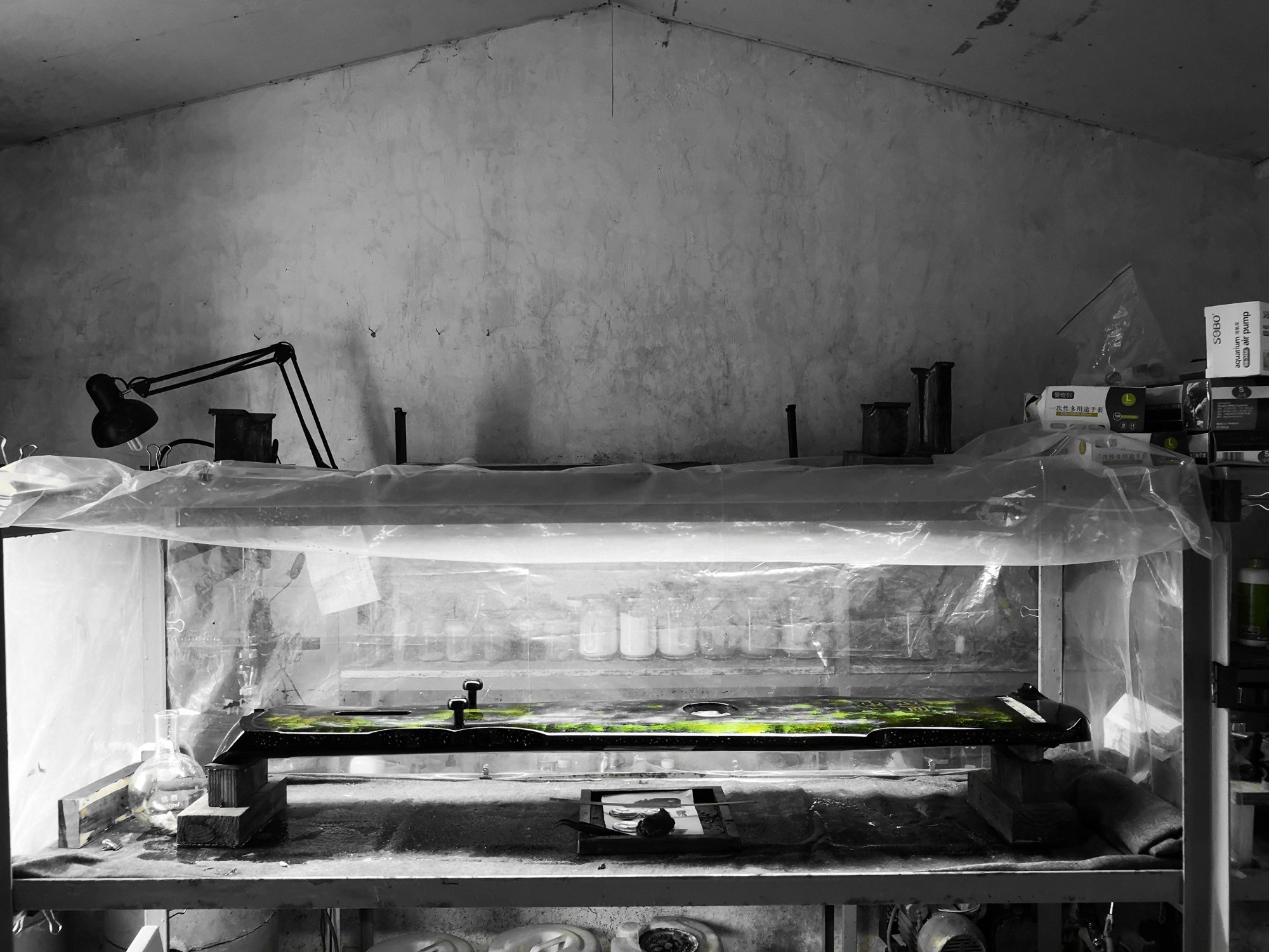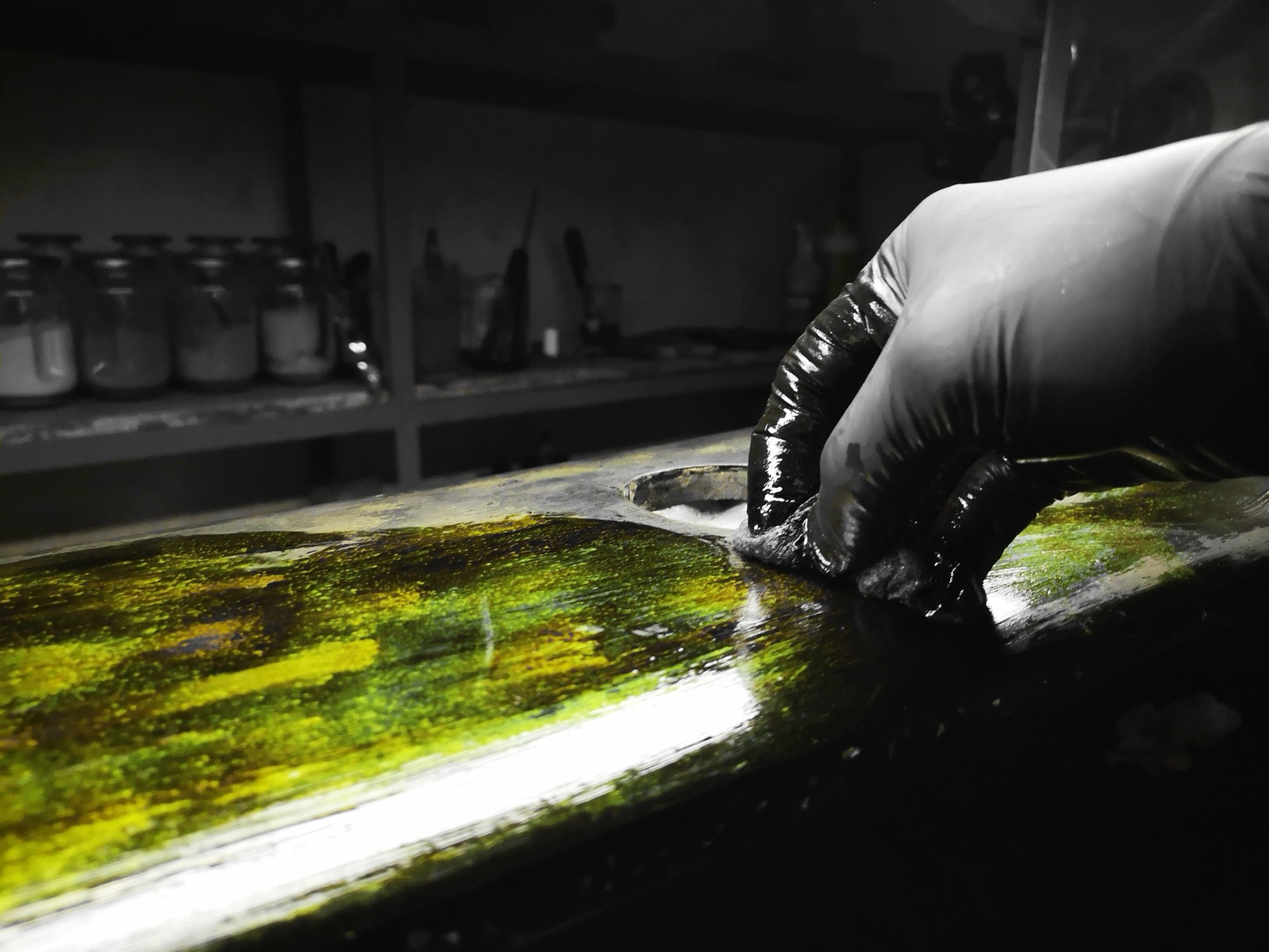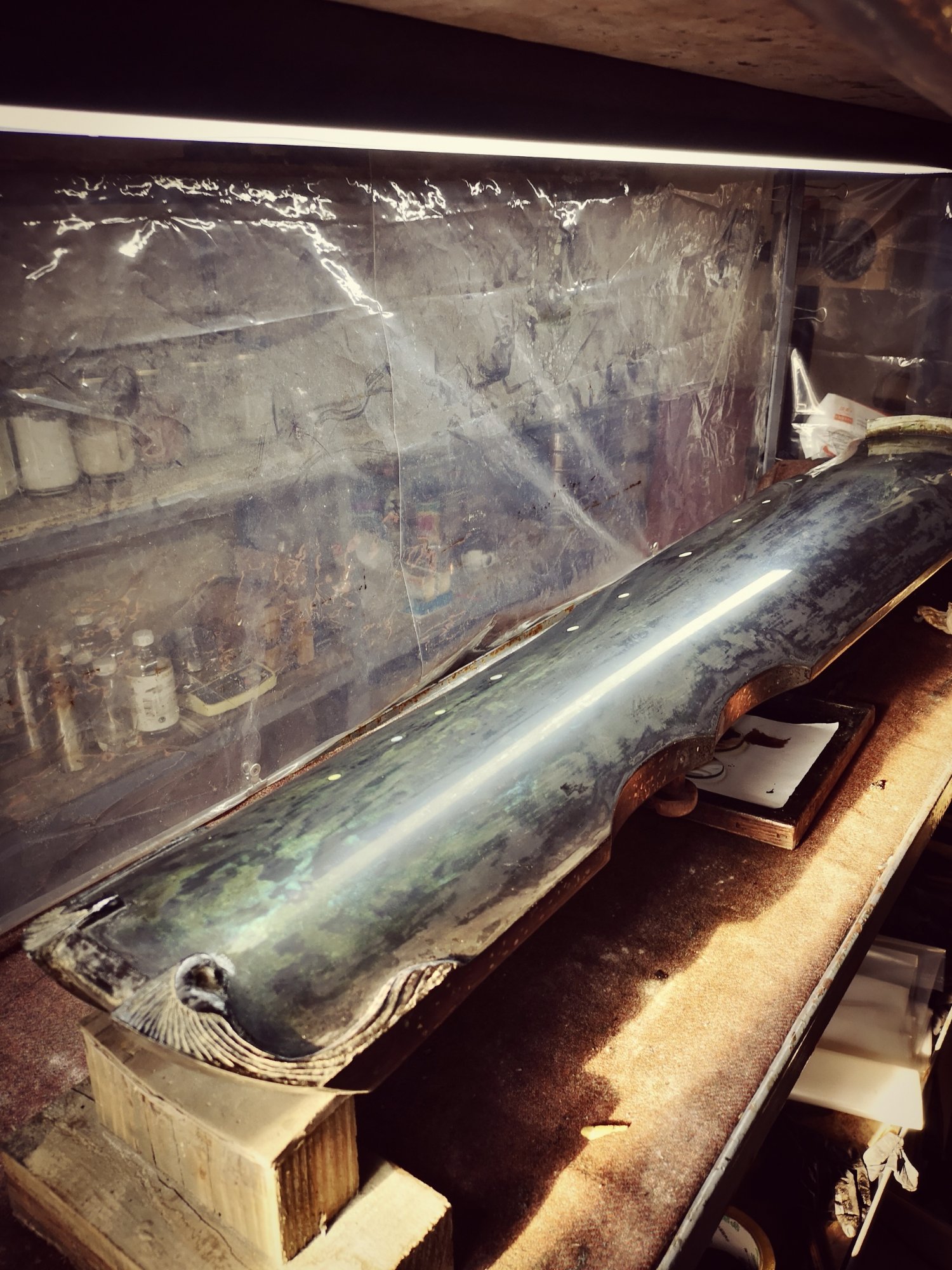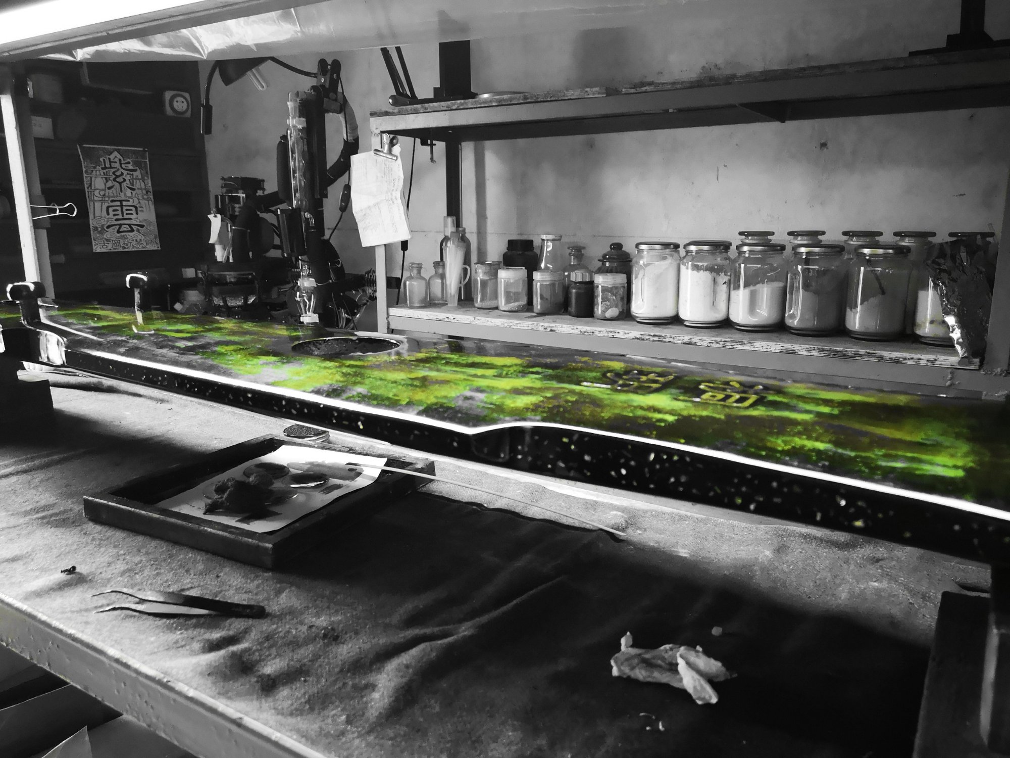 而這次破例,利用爐中精製的罩明漆,在50%左右空氣濕度進行擦漆,然後再遮蓋起來進行加濕24小時…