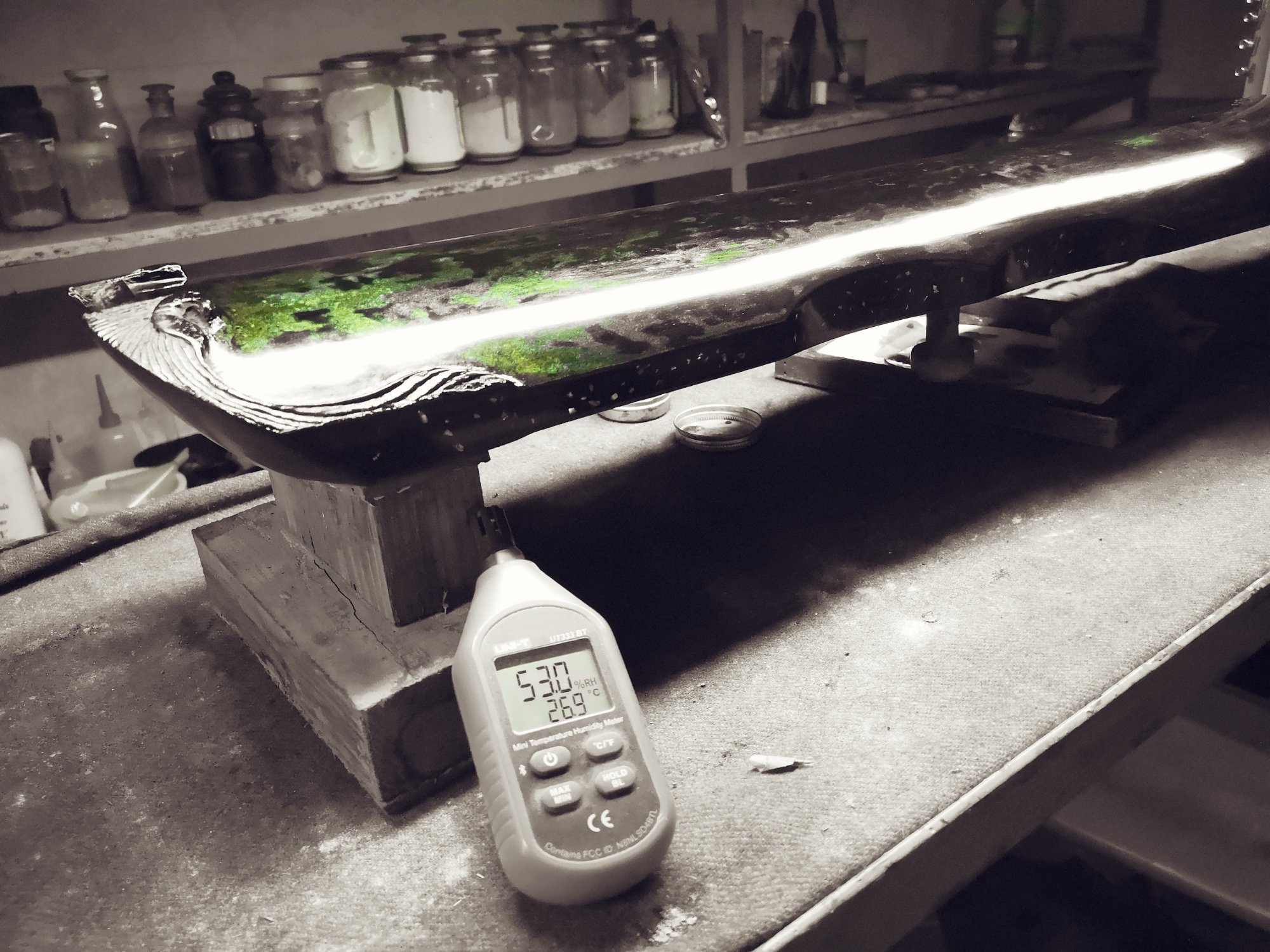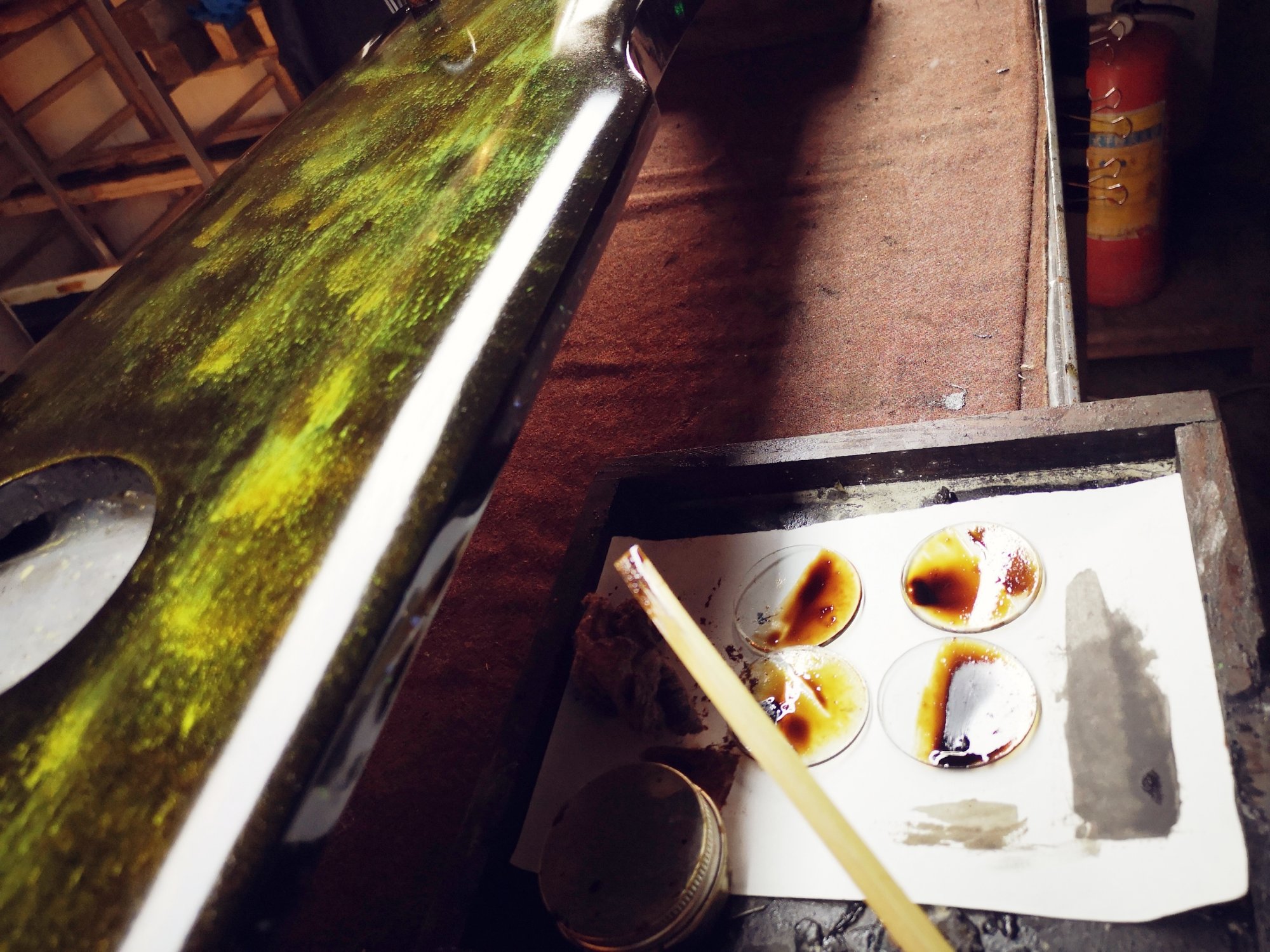 至於“漆工”更是如此,里面包含的不可控因素尤其之多,因此除了樣本實驗,我還會在琴上面作大膽嘗試,也當然需要有把握才下手。