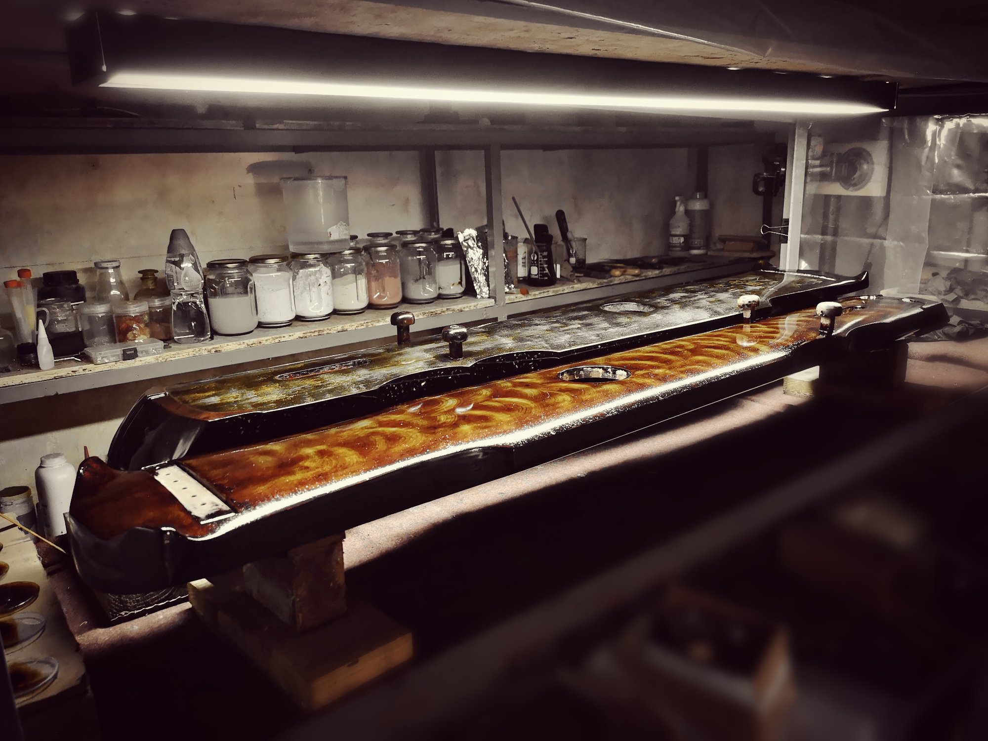 這段時間一直再多項工作上不斷重複,就例如最後兩張琴的擦漆—拋光—水磨。