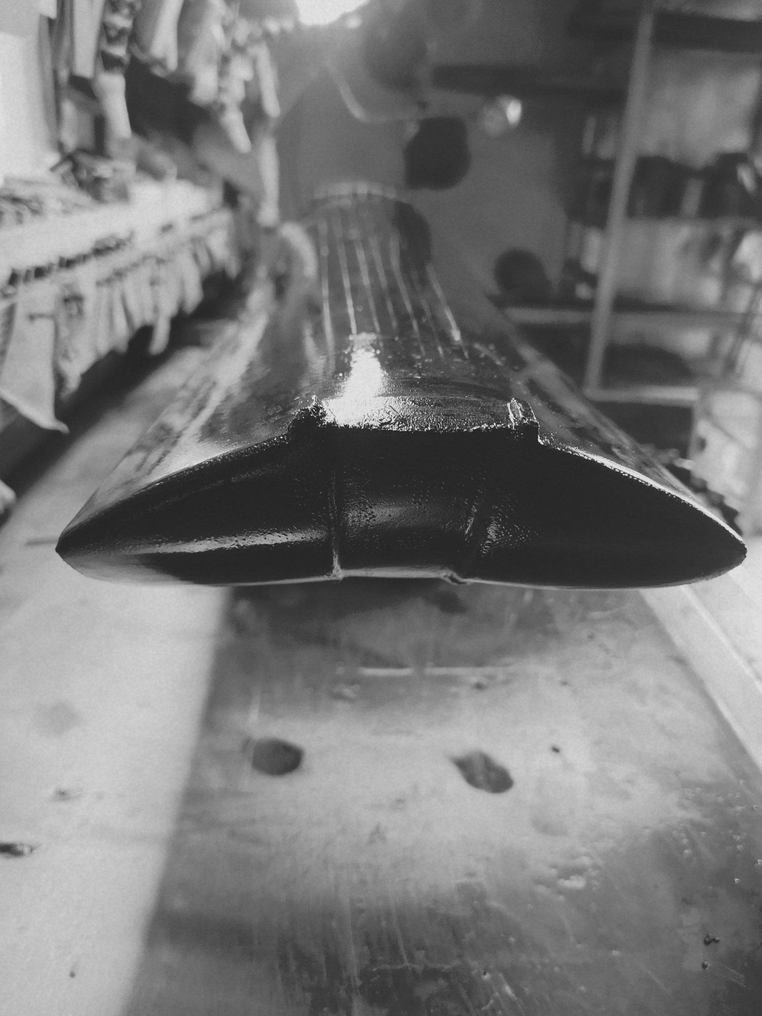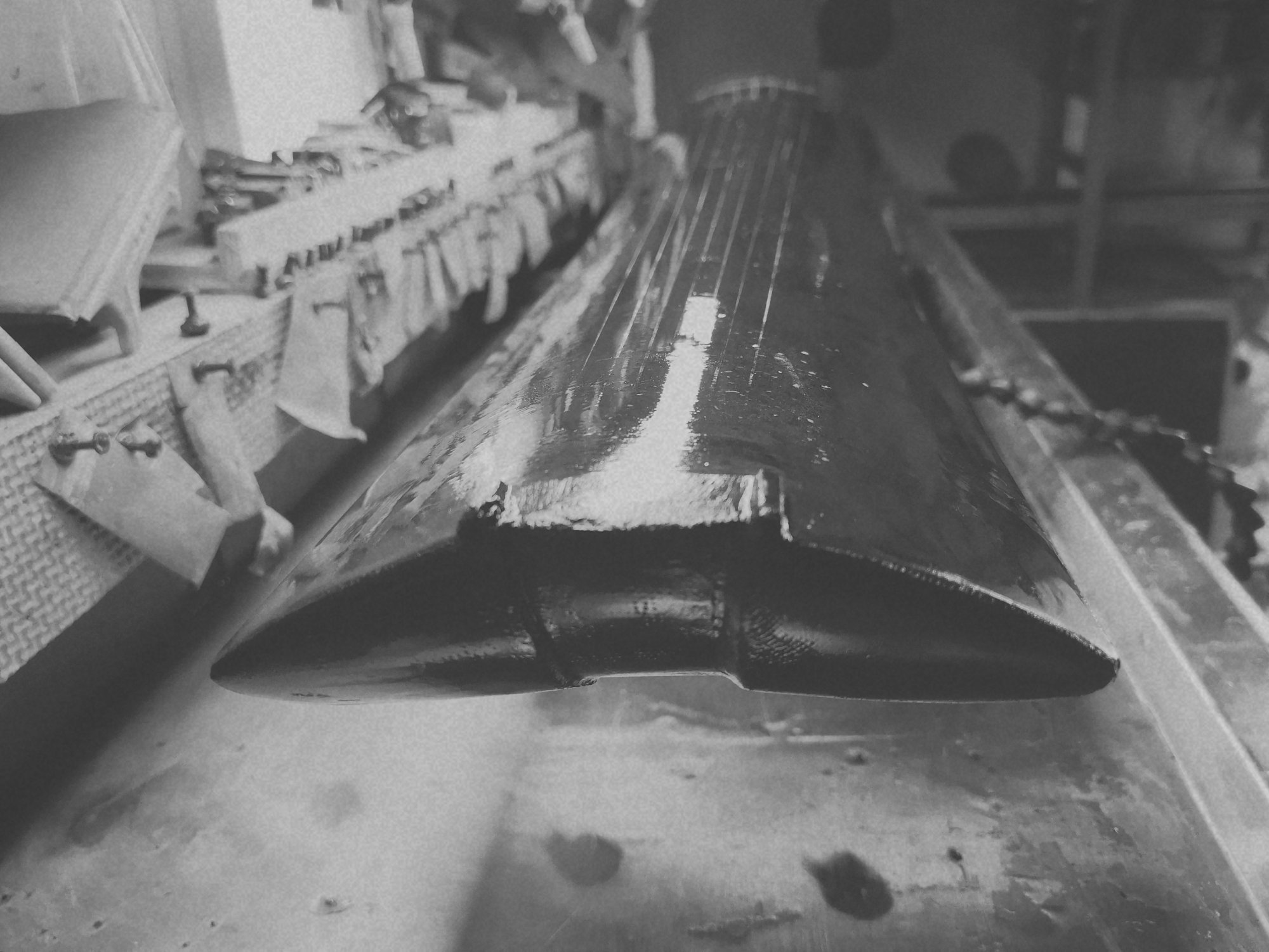 而這張琴,正是依照王鵬老師所創之“大鵬琴”而致敬斵製。其形體簡潔但又不失倉古淳樸,也更是處處細節見功夫。