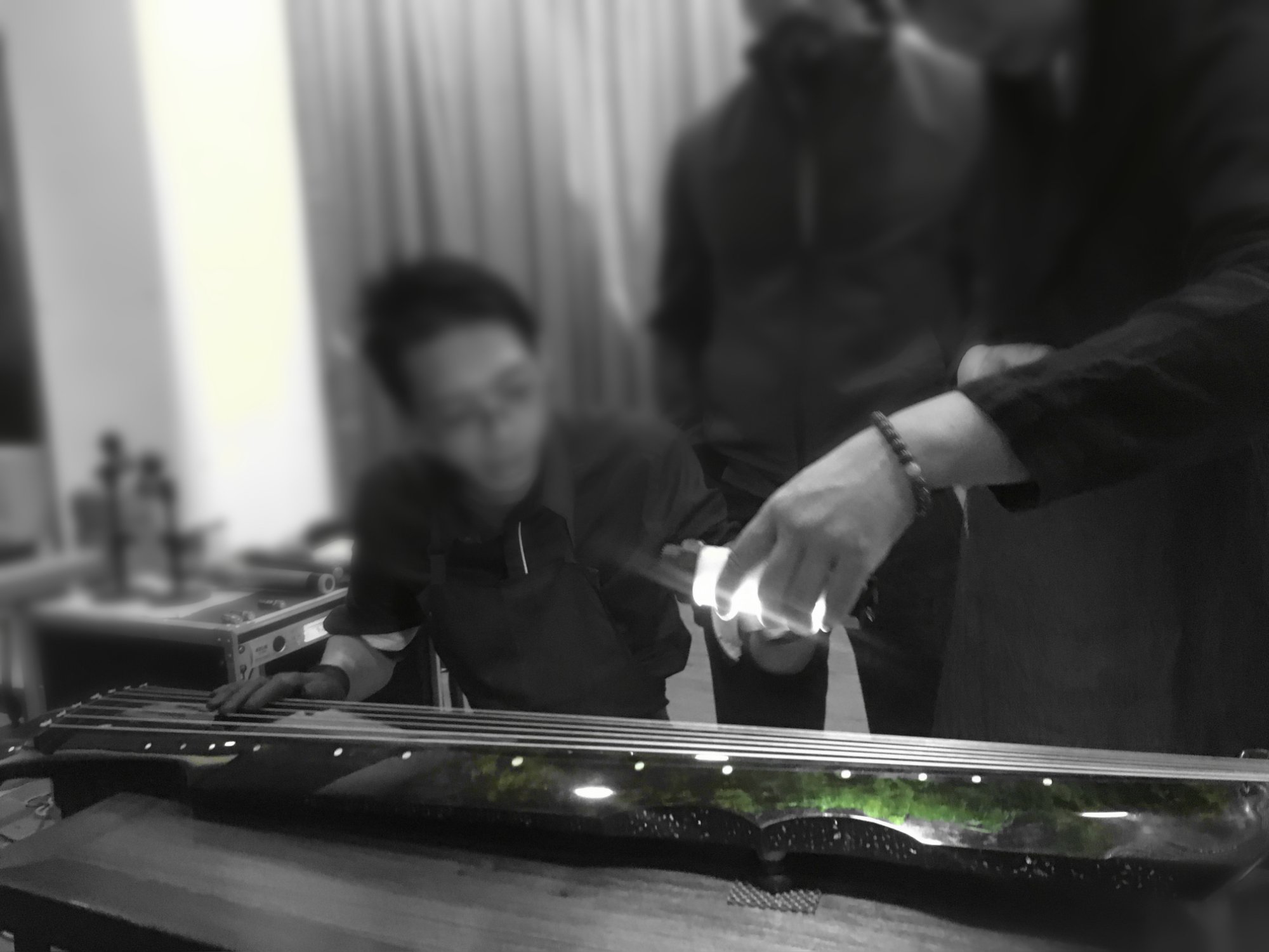 而當日會後的下午,回到工作室。更有廣州陳一民門下的斵琴知己好友,遠門親臨拜訪,讓我受寵若驚,言談甚歡,相互交流斵琴心得與理念。
