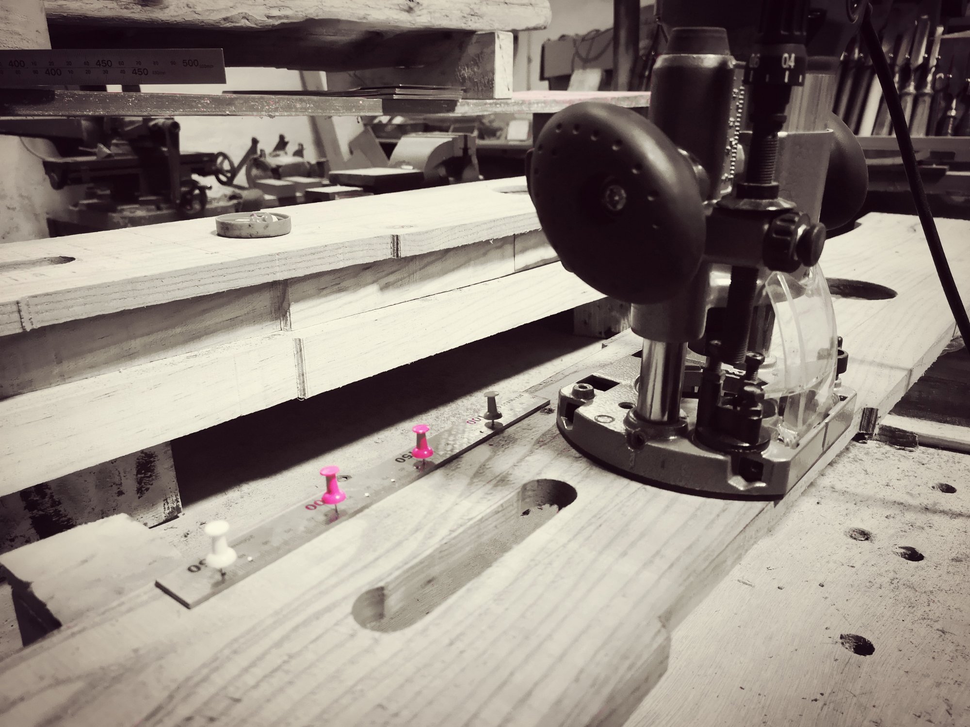 為的就是在單人操作長尺時,使用“圖釘”把尺釘在琴面上以防偏移。也哪怕是在後期裝嵌配件的琴面上也可以錘入圖釘,因為細灰階段,這些針眼皆可修補無痕。