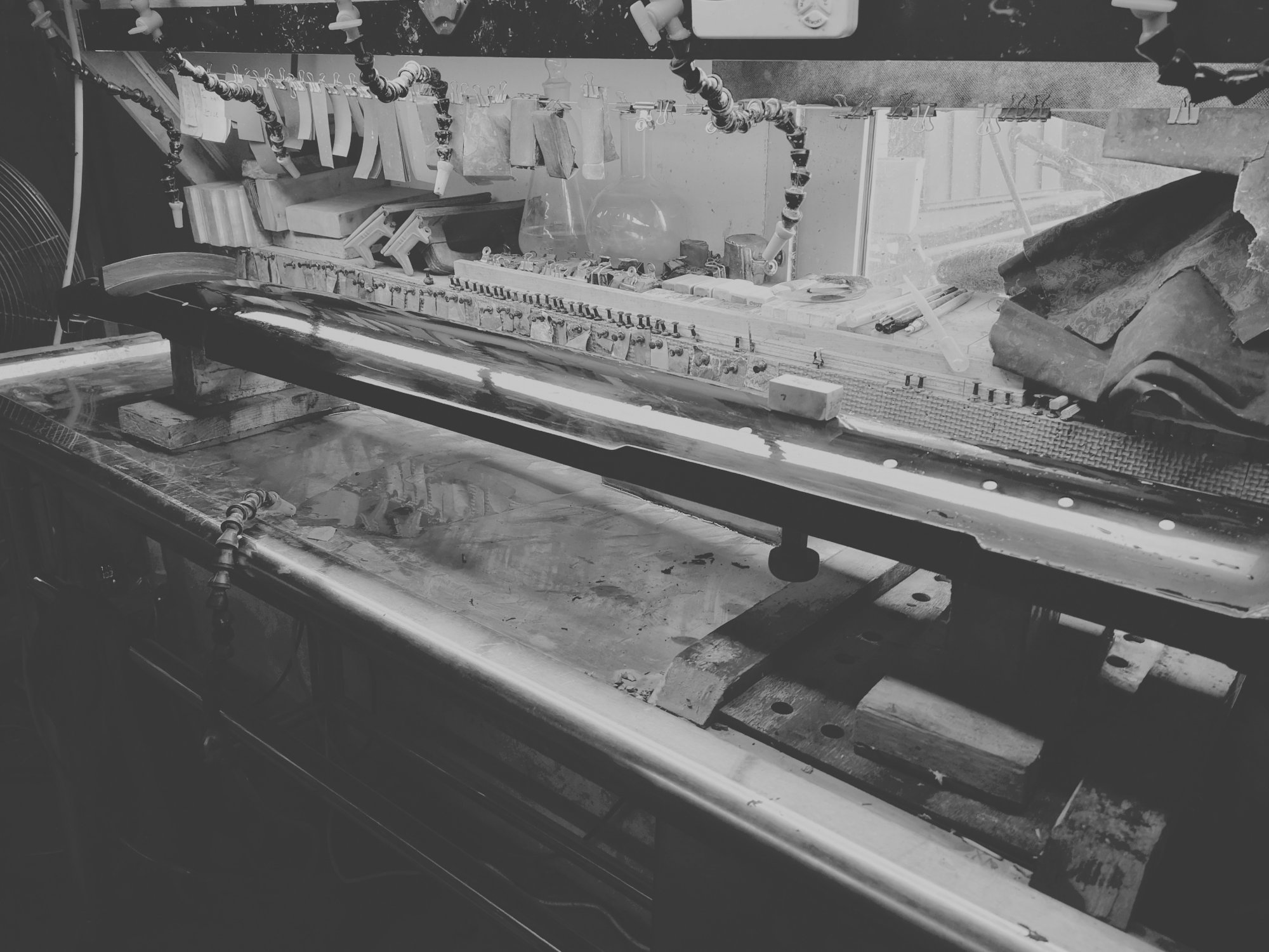 把原先鏡面進行“降級”,使用3000號磨石與5000號砂紙進行微觀修正,為求恢復接近無暇的鏡面。