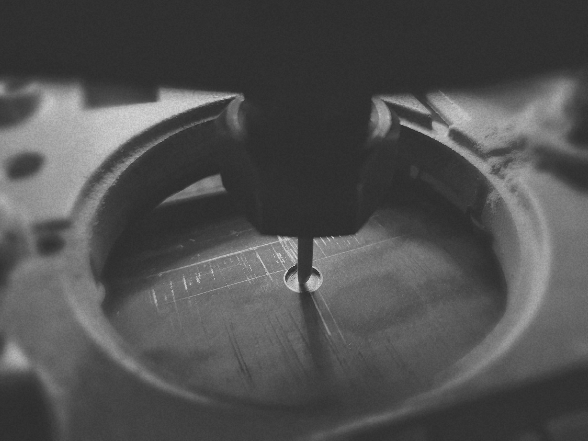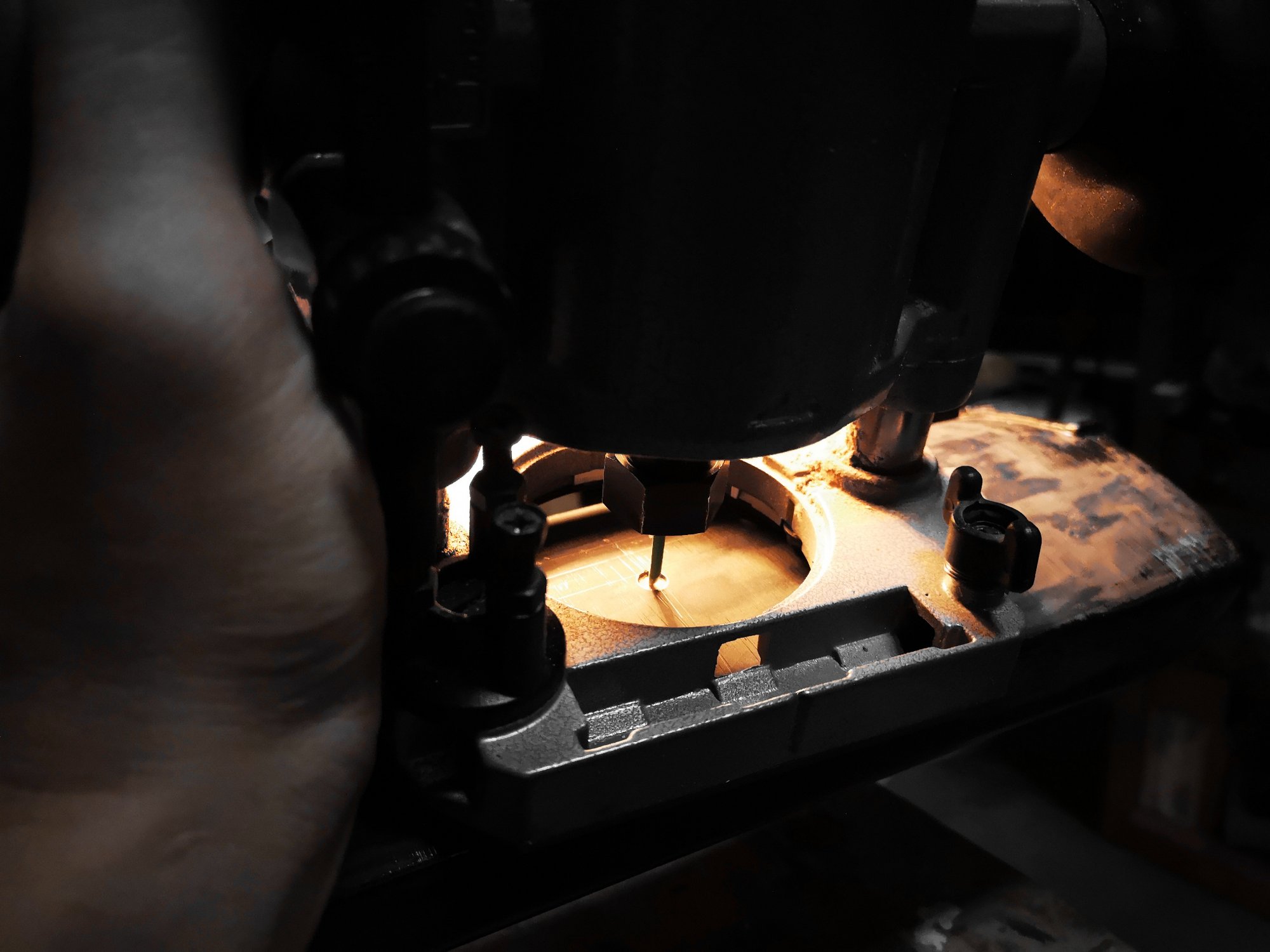 握拿雕刻機,需要「人機合一」,摒除雜念,「起刀落刀」與「開停」都必須「留神」。因爲刀鋒2mm直徑,在6mm直徑圈內進行雕刻。
