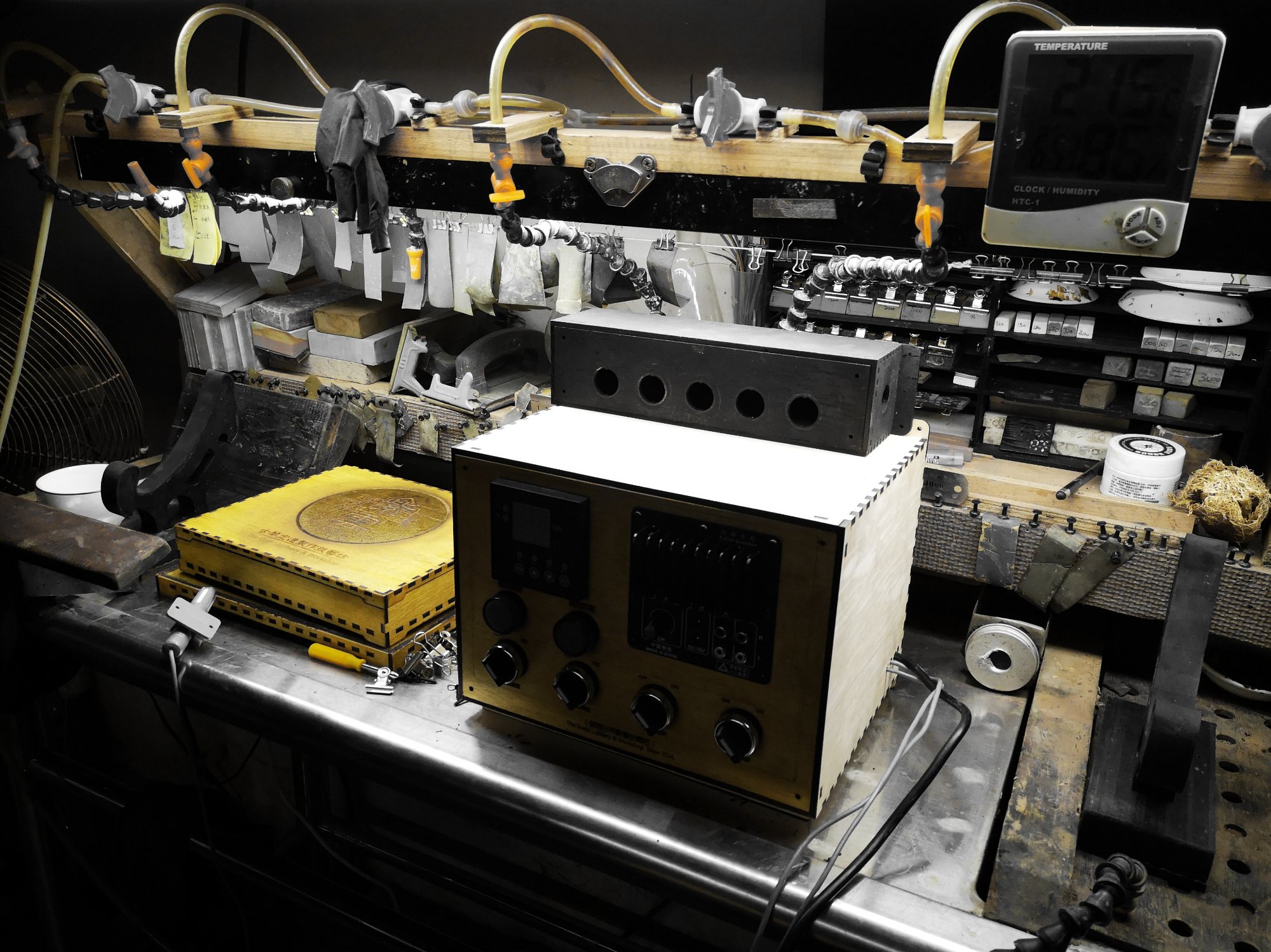 利用PID電腦對「濕度」與「溫度」進行交互式調控。讓琴模擬在不同地域環境下進行「提前過渡」,也是部分工藝在形變微調上進行細微的「乾濕調度」,與此同時也附加「預開聲」與「音色固化」系統。