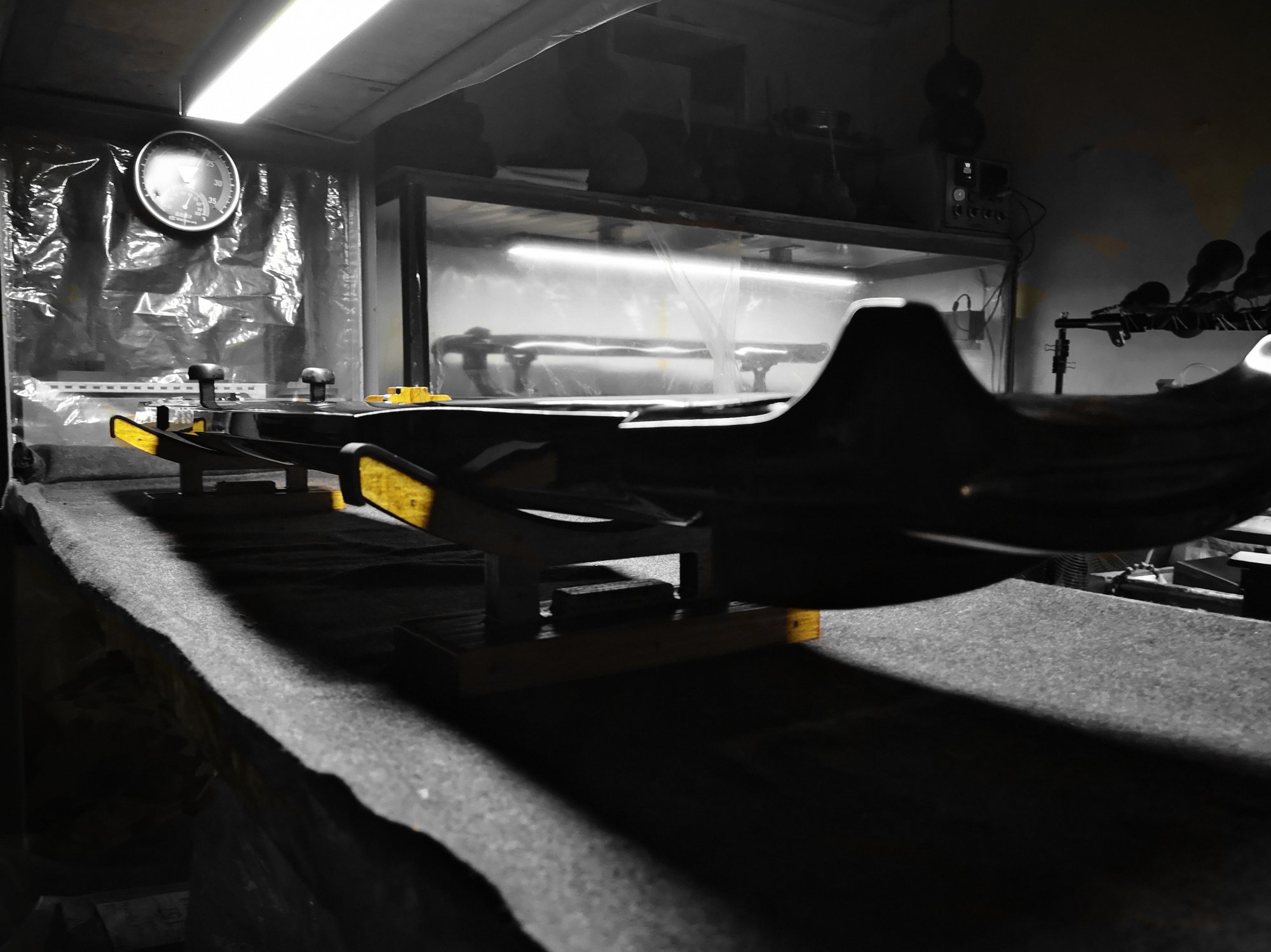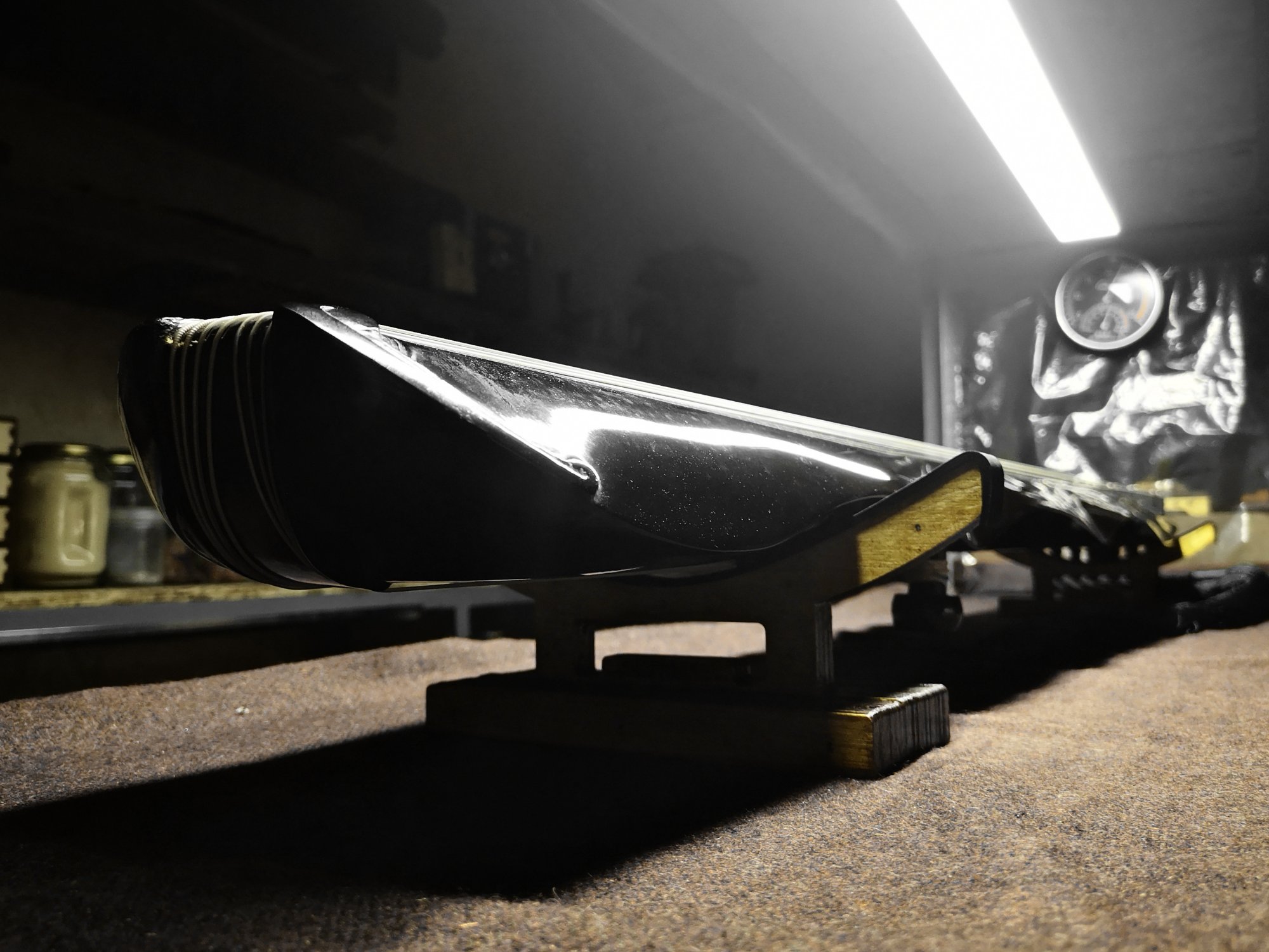 拋光工作中,「仰月架」更必不可少,琴架底座貼上「泡沫墊」後,更可以增加摩擦力,防止在「拋光」過程中,左右「推擦」發生移位。
