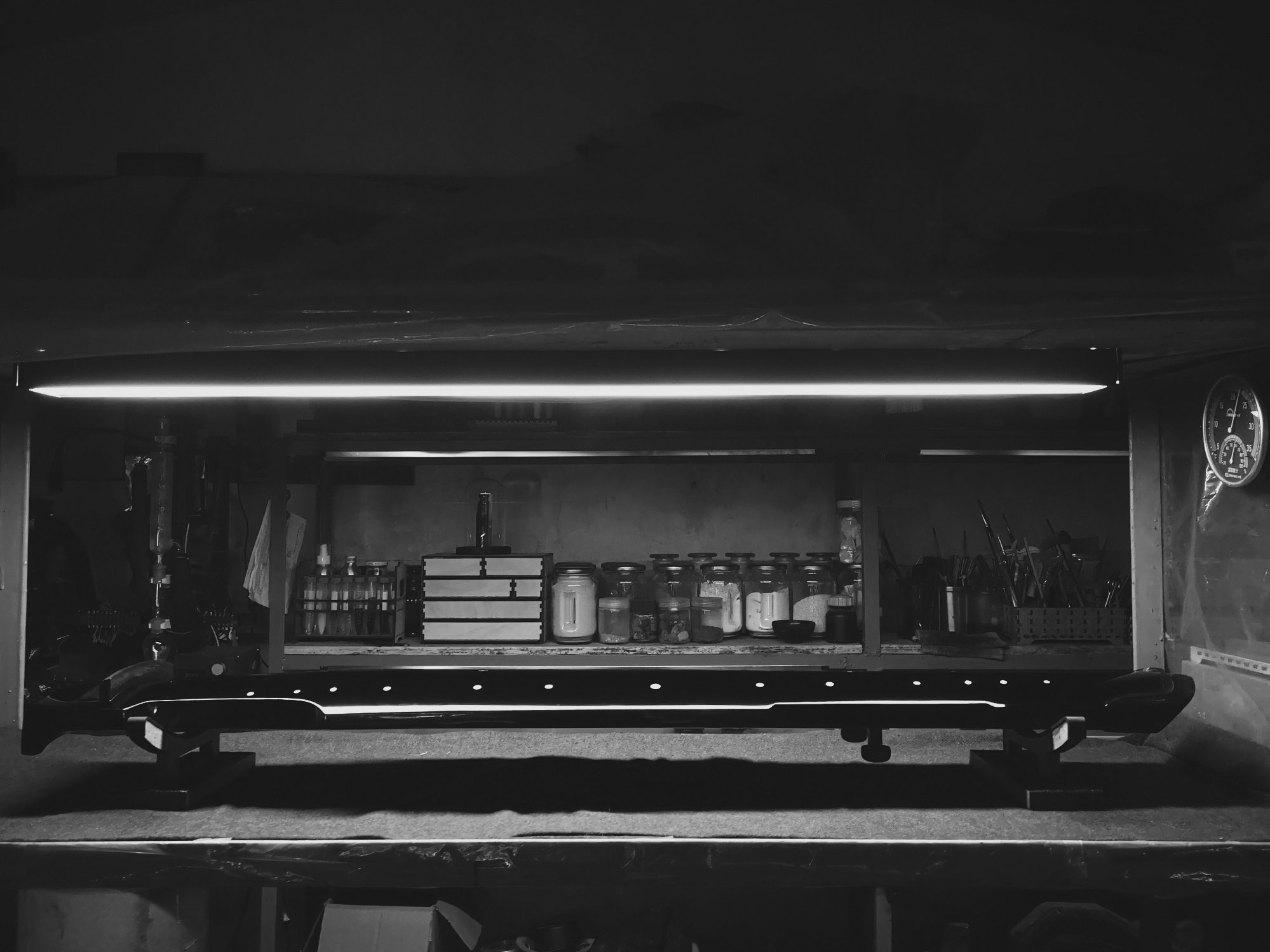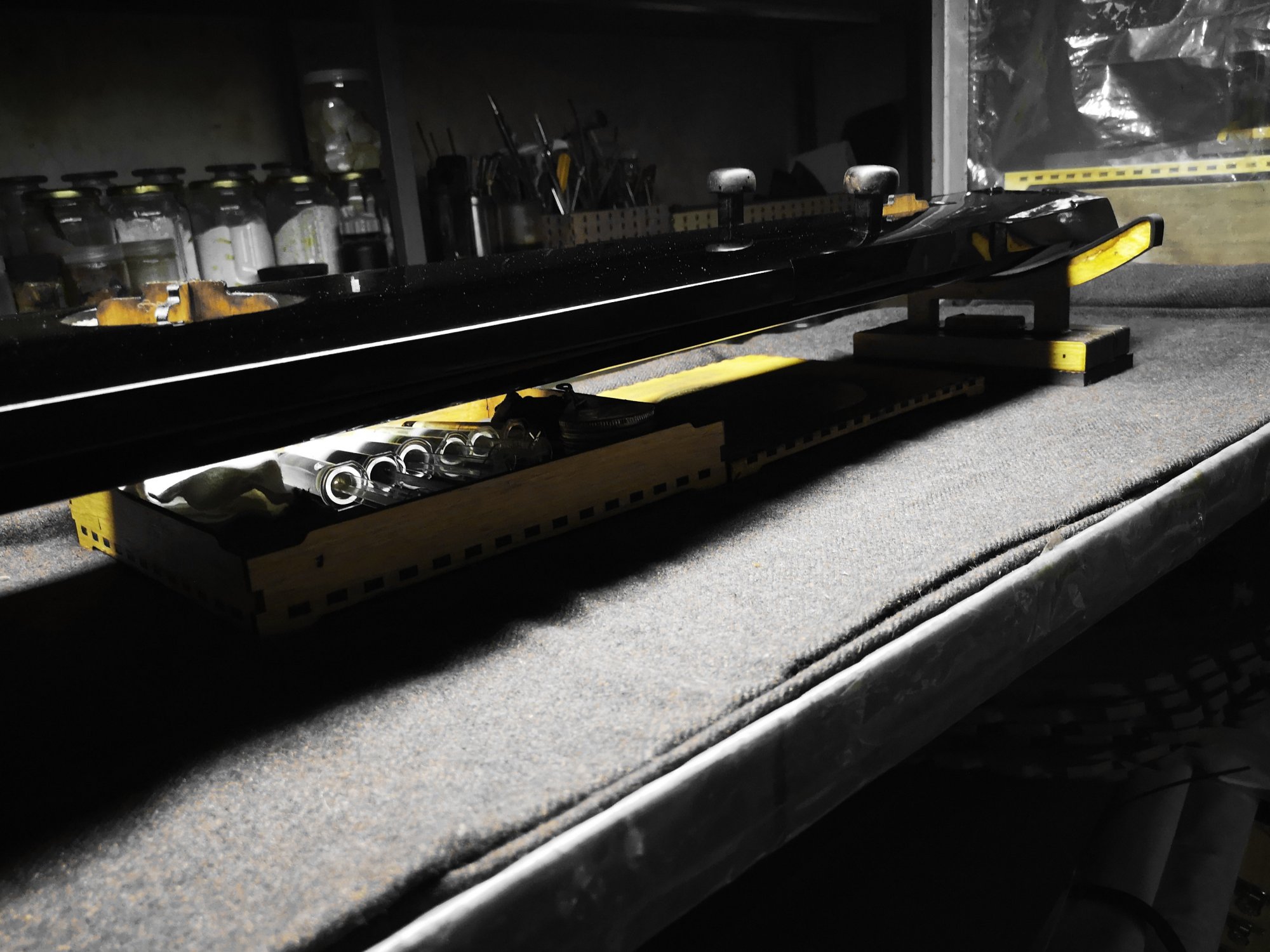 方便在琴下放置「拋光物料」,或細修琴面所用的「各種工具」。