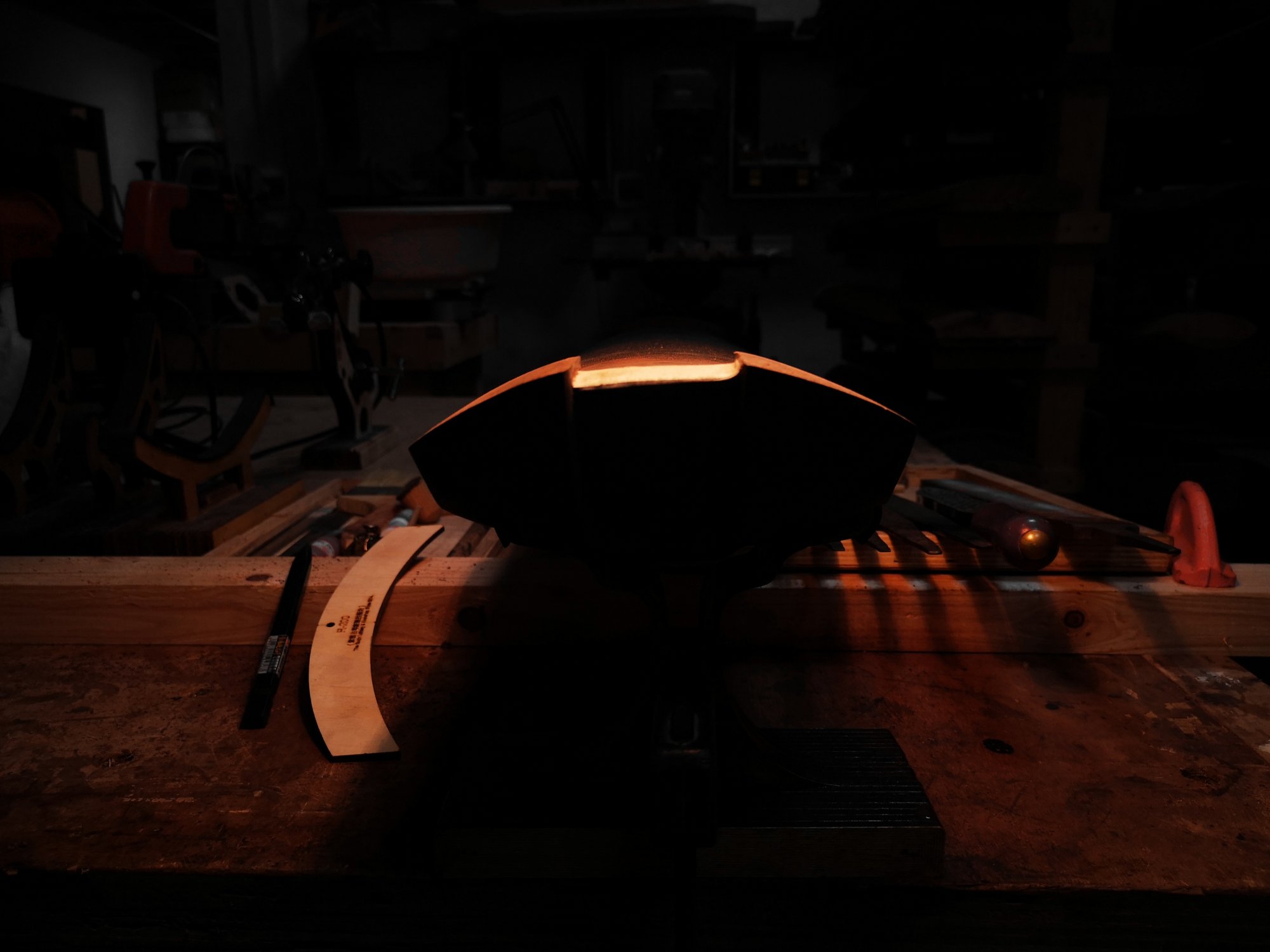 冠角過於「硬朗」,就會讓古琴整體的「氣質」偏向鋒芒,過於「圓潤」又會顯得「庸俗」。以至於避免這種「工藝迷思」,也就只需盡量與「琴面弧度」相一致即可。