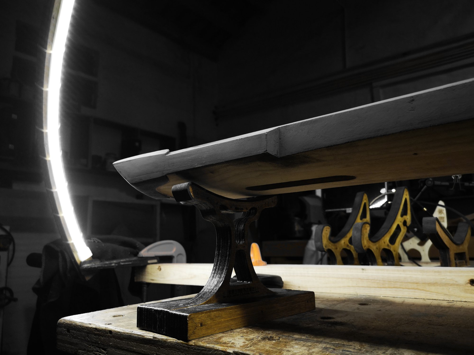 為求保持由始至終的「氣質」,就需要從「木胚」開始兼顧其「棱角」鋒度,乃至「裹布」「刮灰」,直到當下「打磨修邊」。