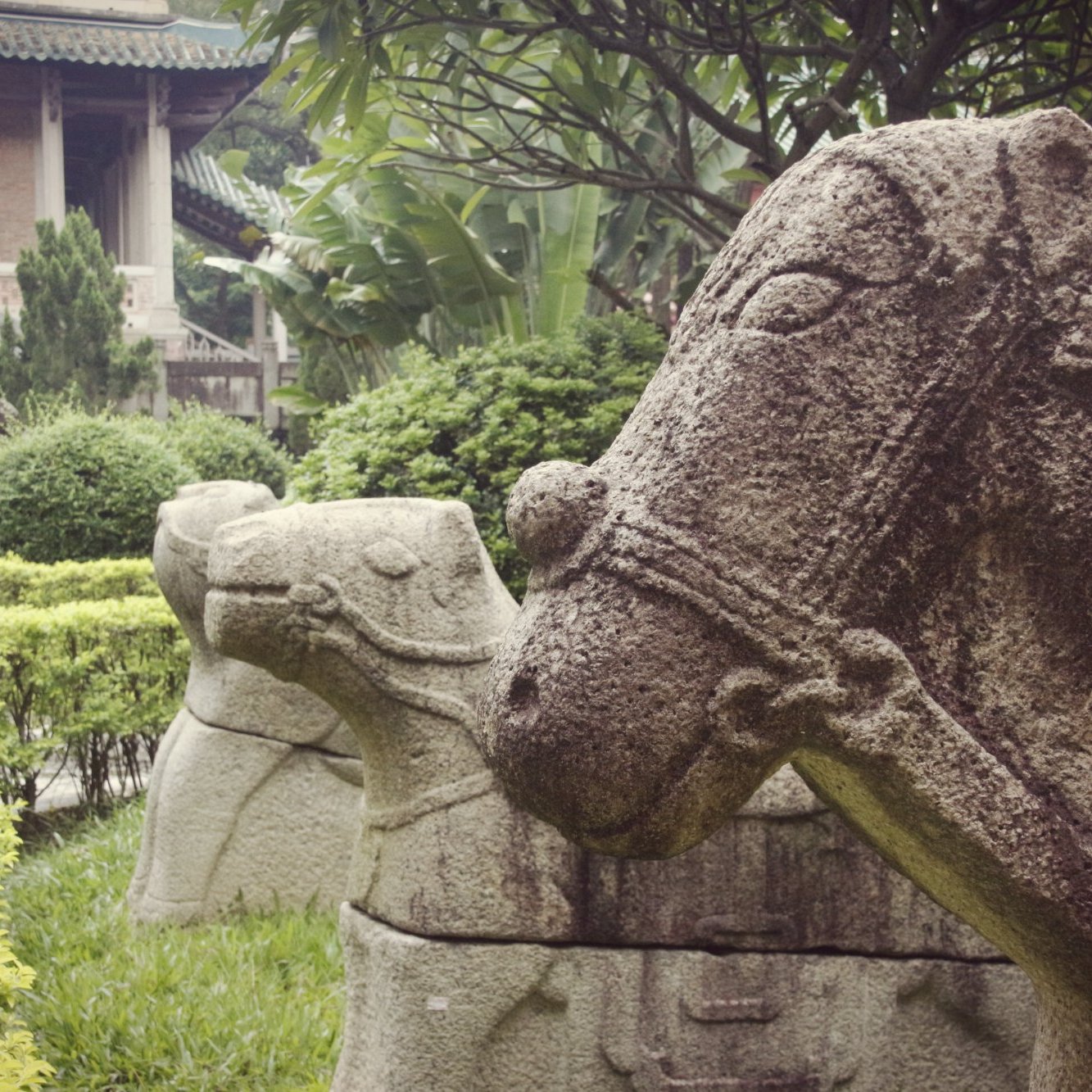 走到後院,才驚覺大殿中軸兩邊佈局有年代久遠的鎮墓石獸,滄桑背後又有多少人窺探過其中的輝煌故事?