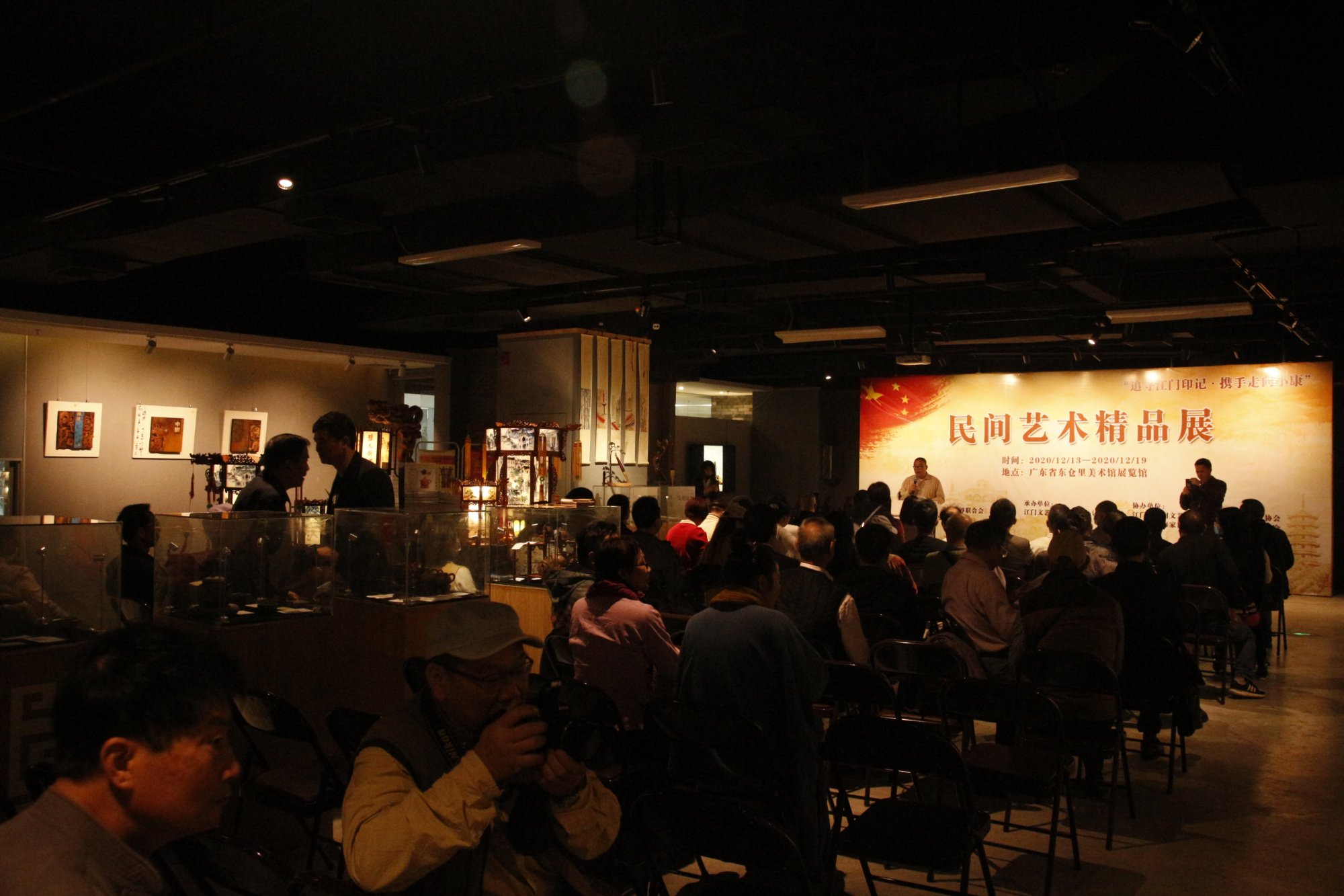 12月13日上午,由江門市文聯、江門市總工會聯合主辦,江門市民間文藝家協會協辦的《民間藝術精品展》在廣東省東倉里美術館開展,本次展覽是2020“追尋江門印記·攜手走向小康”藝術作品展覽月的其中一場展覽活動。來自江門市五邑各區特色精品380多件在本館會場與觀眾會面。展覽將持續至12月19日,展期一周。