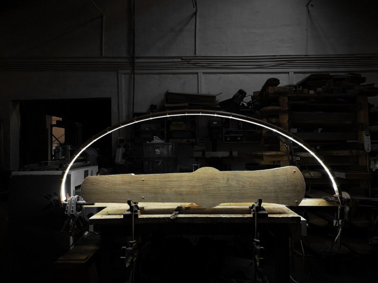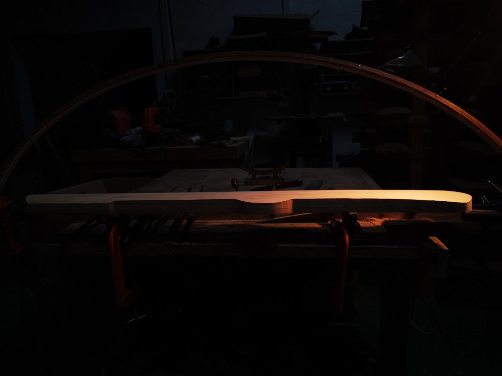 側面琴身面底板紋理對接,是巧合也是精度,有待跟著下來的修琴邊以及降低整體厚度。