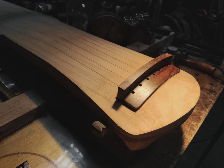 2021年來自國内定制琴,模板選用{太古遺音琴},絲弦杉面梓底,弦長暫定111cm、琴長120cm、其他測量數據待定並逐漸補全。