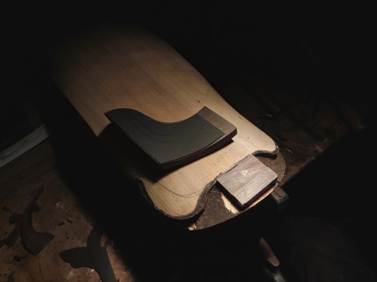 Especially in the stage of embedding and carving the Guanjiao of the Jiaoye Qin, the curve of the Qin tail will greatly increase the difficulty of embedding. Therefore, at the beginning design of the Jiaoye Qin’s wave side, it is necessary to consider the embed depth and the thickness of the Guanjiao accessories, and it is necessary to leave sufficient adjustment range for correction at each step.