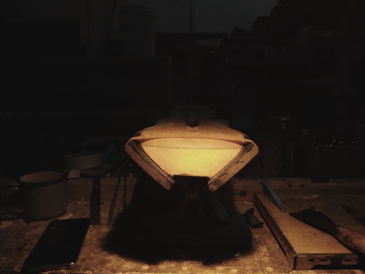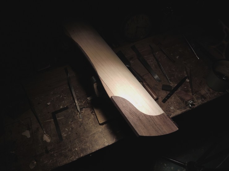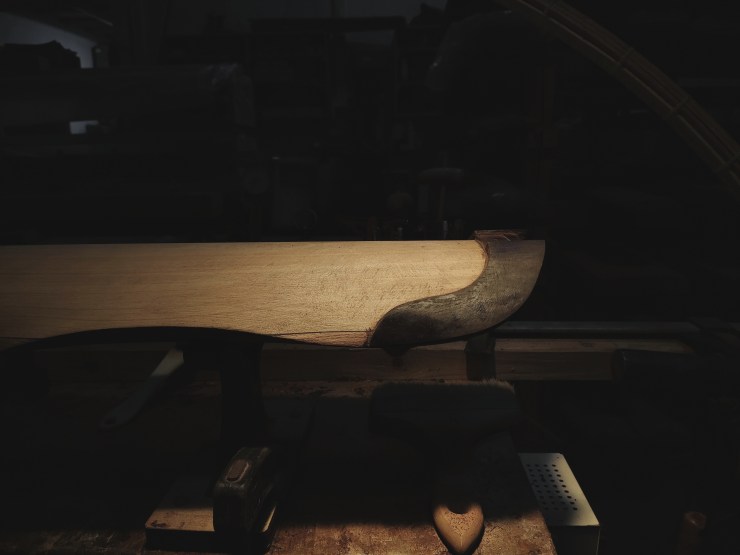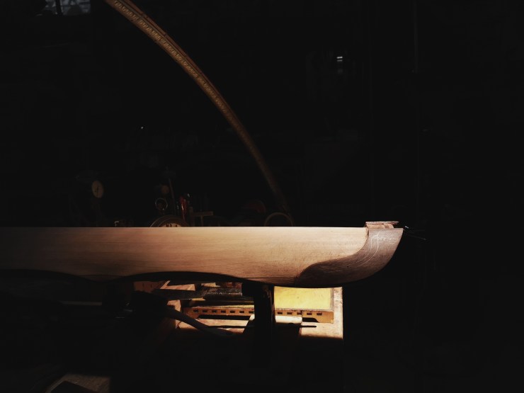 尤其在蕉葉琴的冠角鑲嵌與雕刻工作中,蕉葉琴尾的曲線會讓冠角鑲嵌難度大幅提升。所以在蕉葉琴的邊墻波浪設計開始就需要考慮冠角的鑲嵌深度以及配件厚度,更需要在每一步留足夠多的修正餘地。