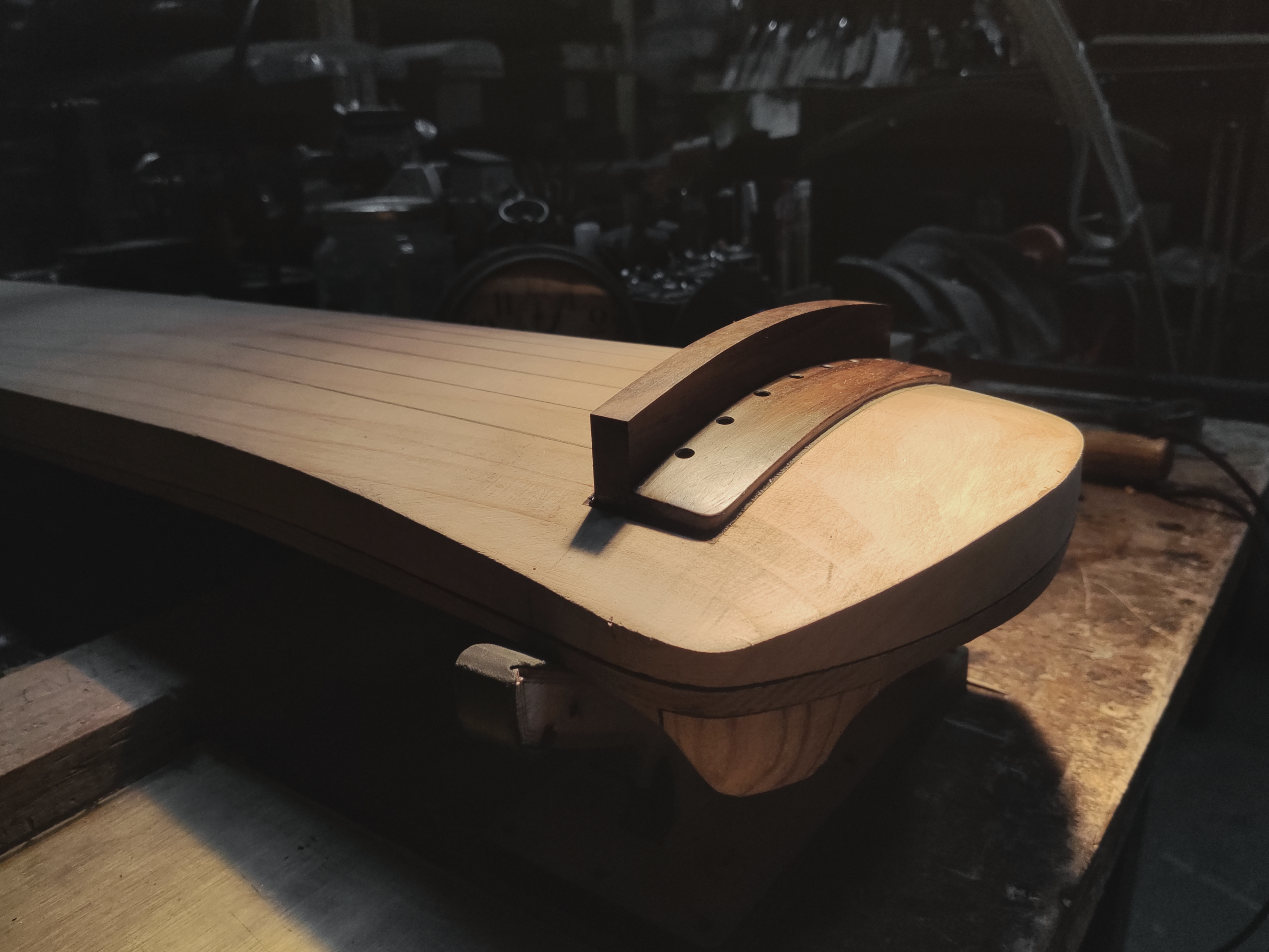 至於主要配件;則在整張古琴的音色當中佔有相當的權重,其木料的選用與鑲嵌的工藝結構、深度比例、鑲入角度都會影響著琴弦在震擺期間的傳遞效率以及傳入角度。而正因爲這一處細節無形地影響了一張琴的整體發揮,雖然其占有比例不至於顯著但可謂入微,何況功到意足之價值。