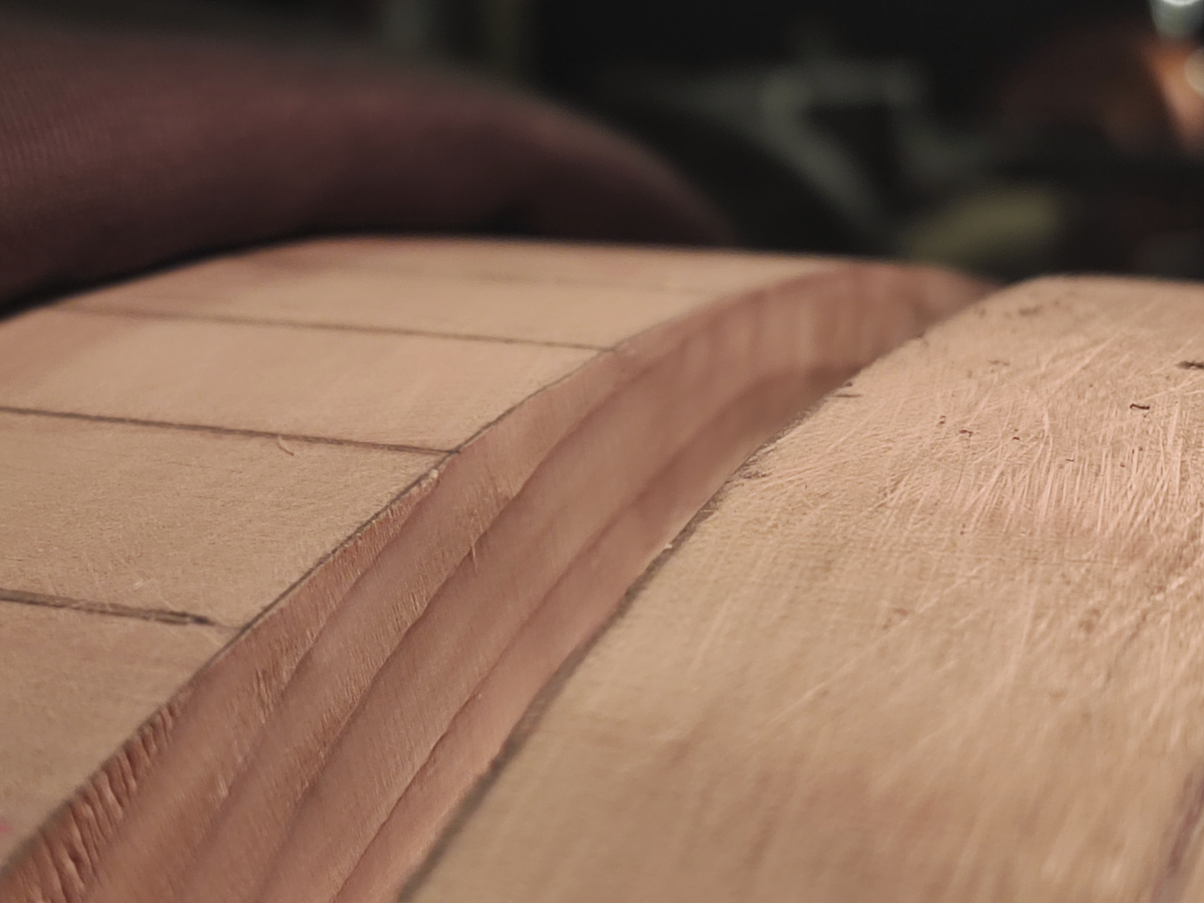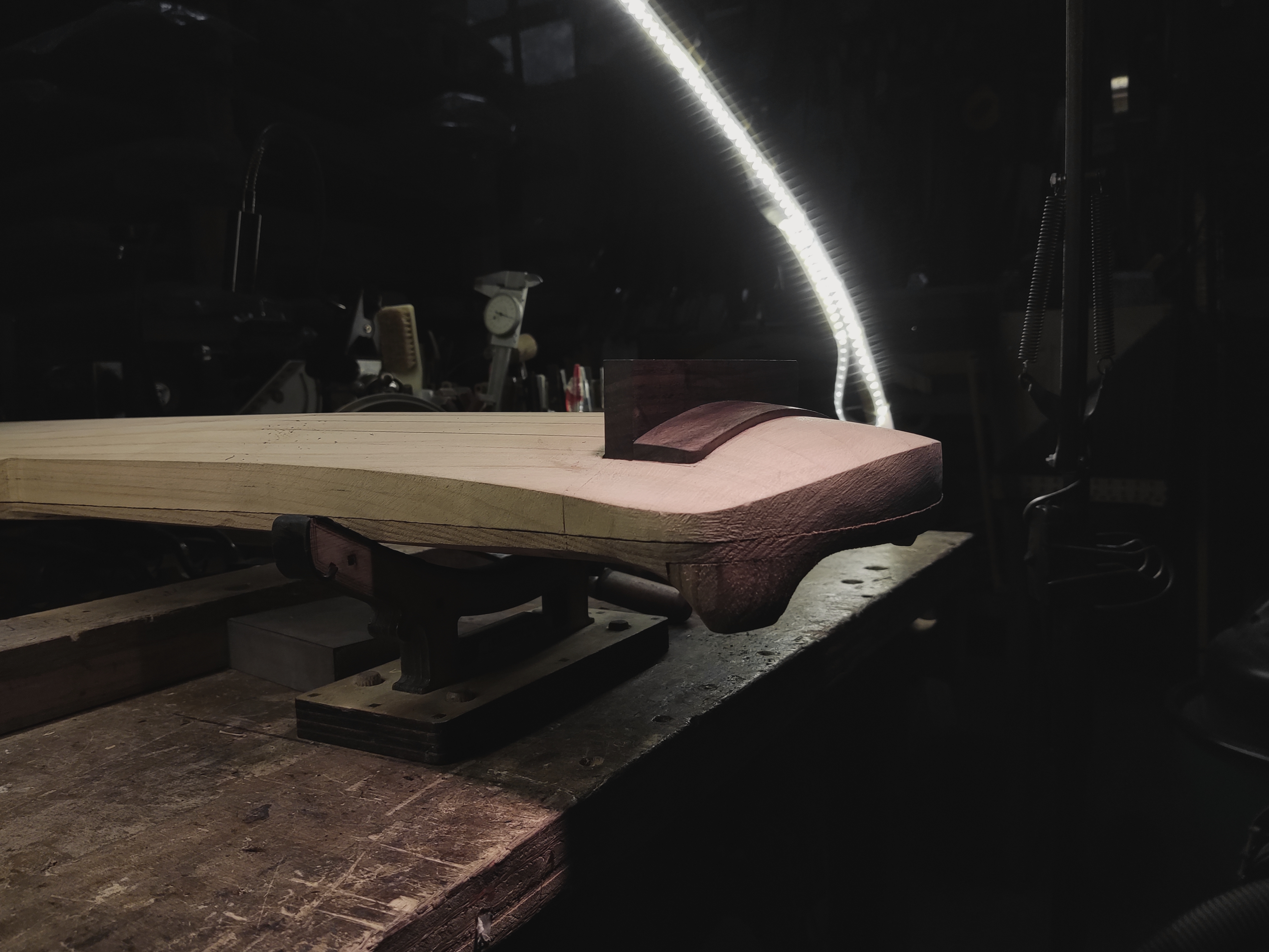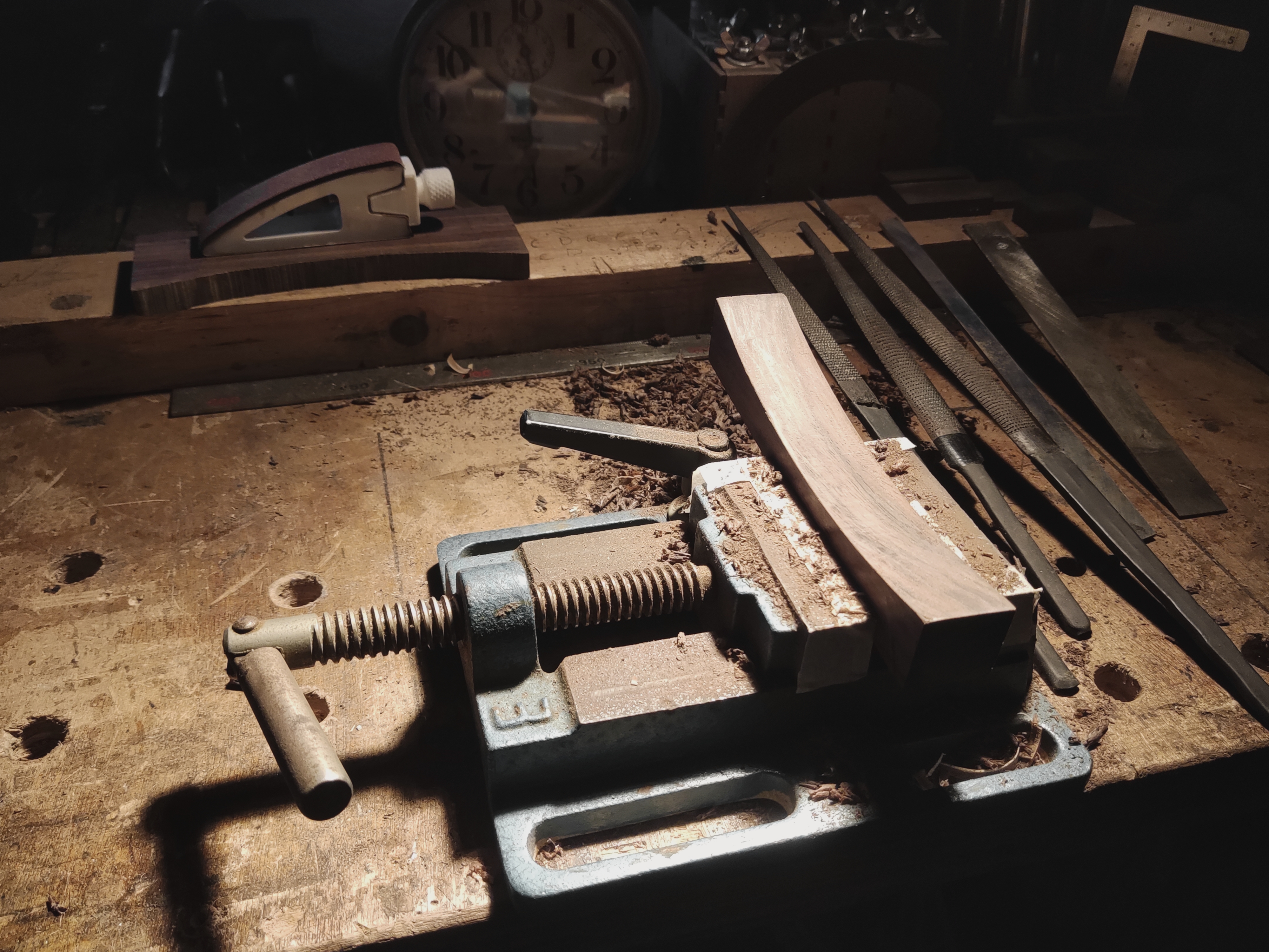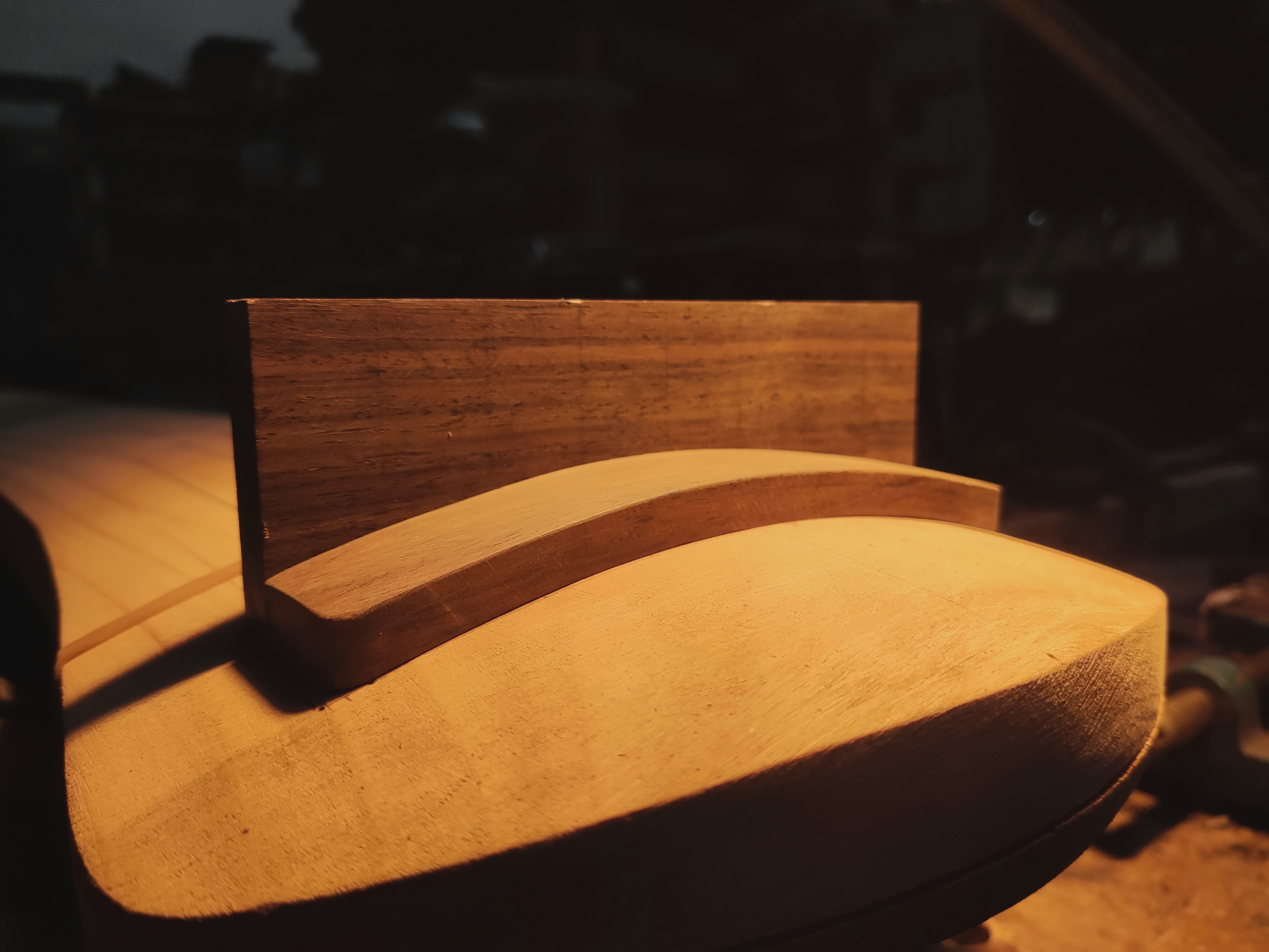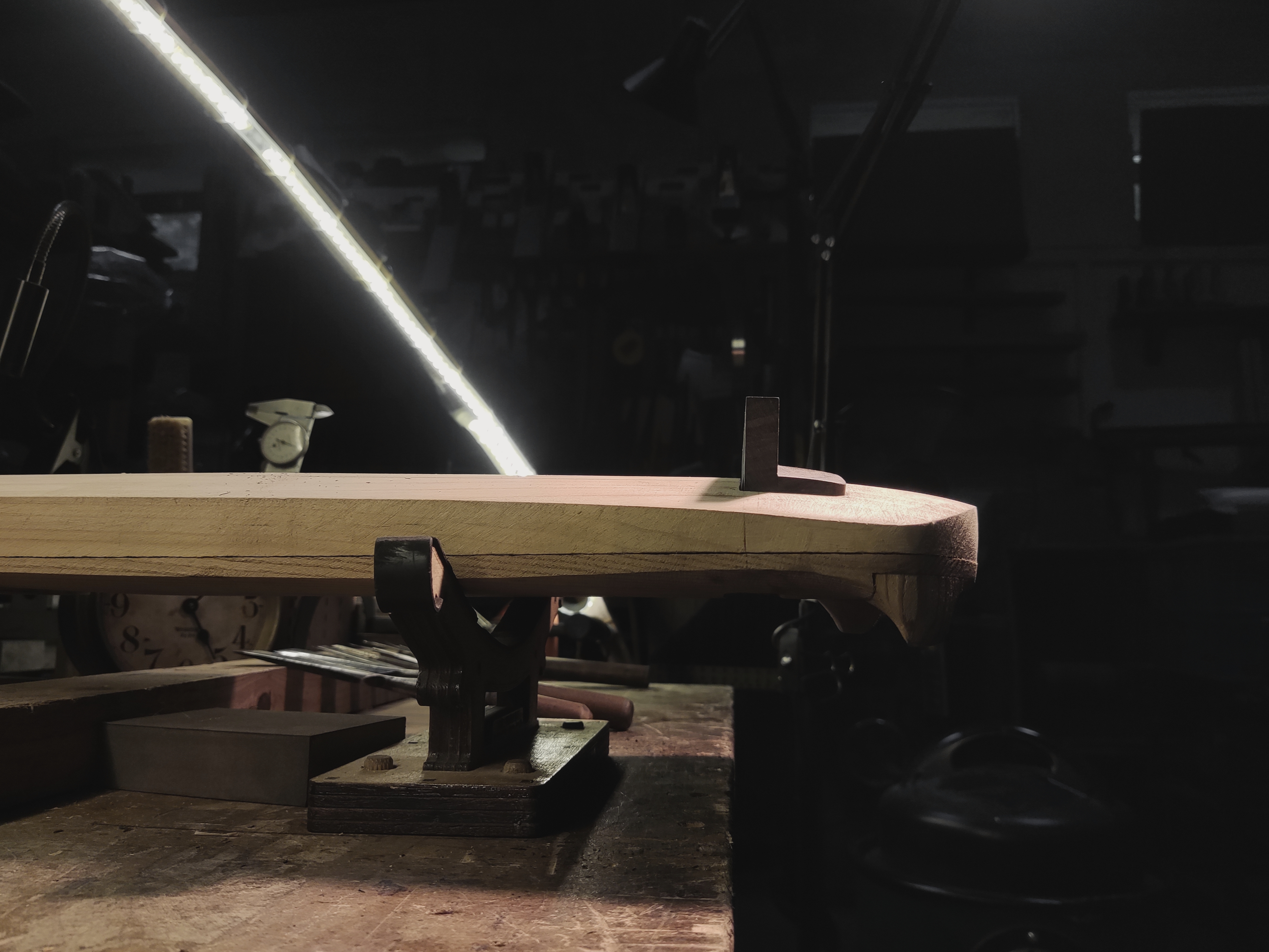 所以爲了盡可能減少收縮縫隙對音色帶來的不同影響,其鑲嵌工藝就需要做到兼顧時間推移所帶來的前因後果。既要穩定不同季候變化所產生的縫隙與張力釋放方向,更要保持其承載琴弦拉力強度。簡而言之;歲月推移其滄桑自然而然,其生命張力依舊蒼勁。