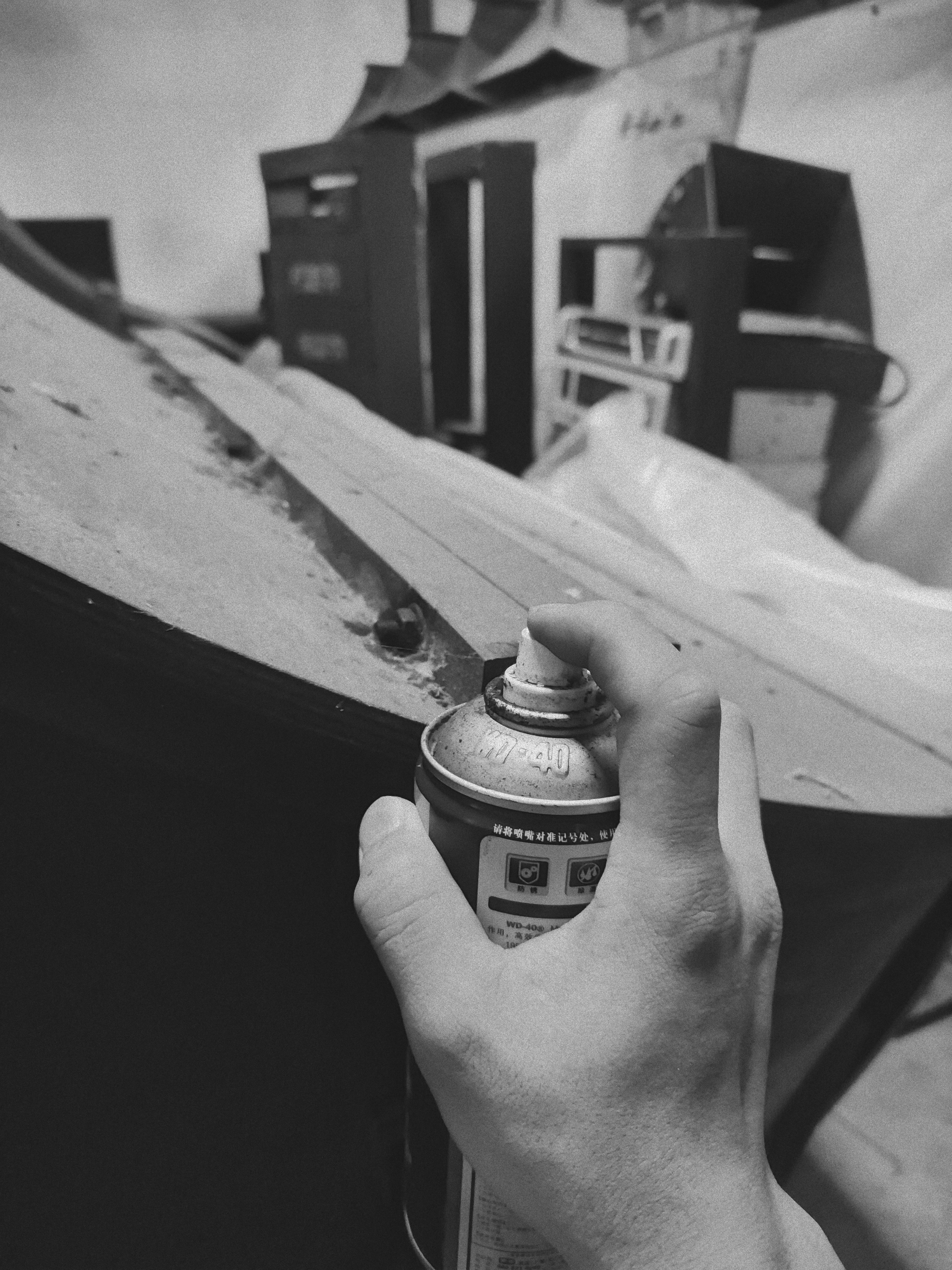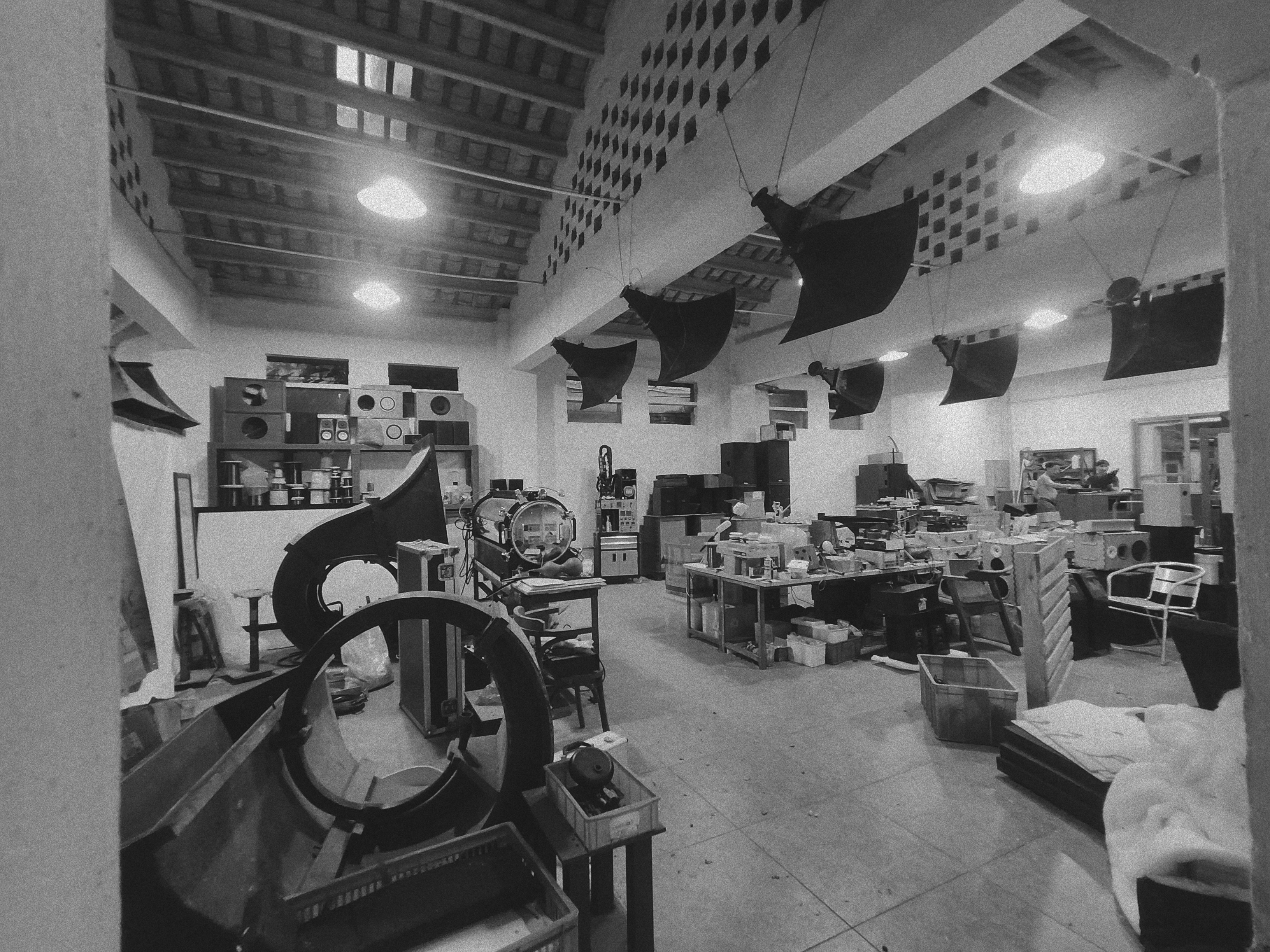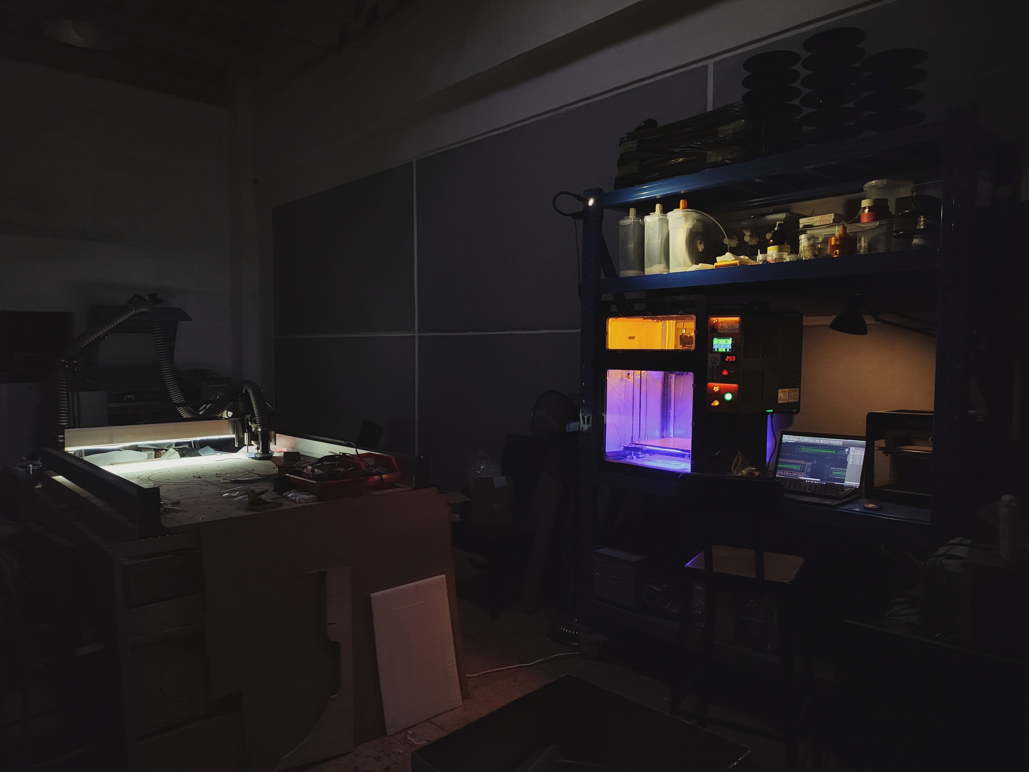 高密度就意味著效率翻倍,因為原處佔地面積以及工作區域過於空大,開放式空間濕度波動幅度過大,不方便銜接乾濕工作之間的切換,雖環境底噪無可比擬 但始終地處氣場過於沉寂而致物件粘滯易朽……