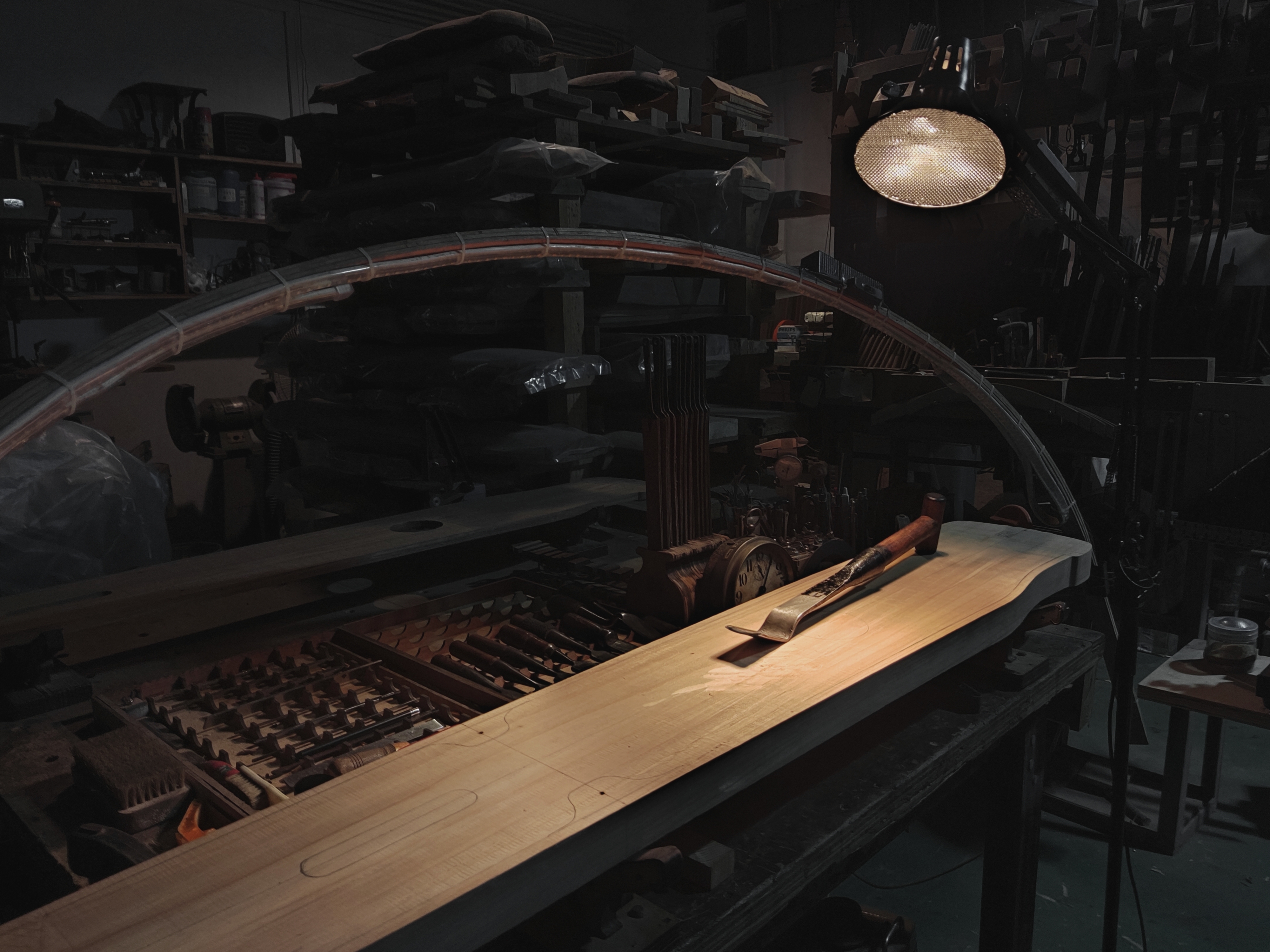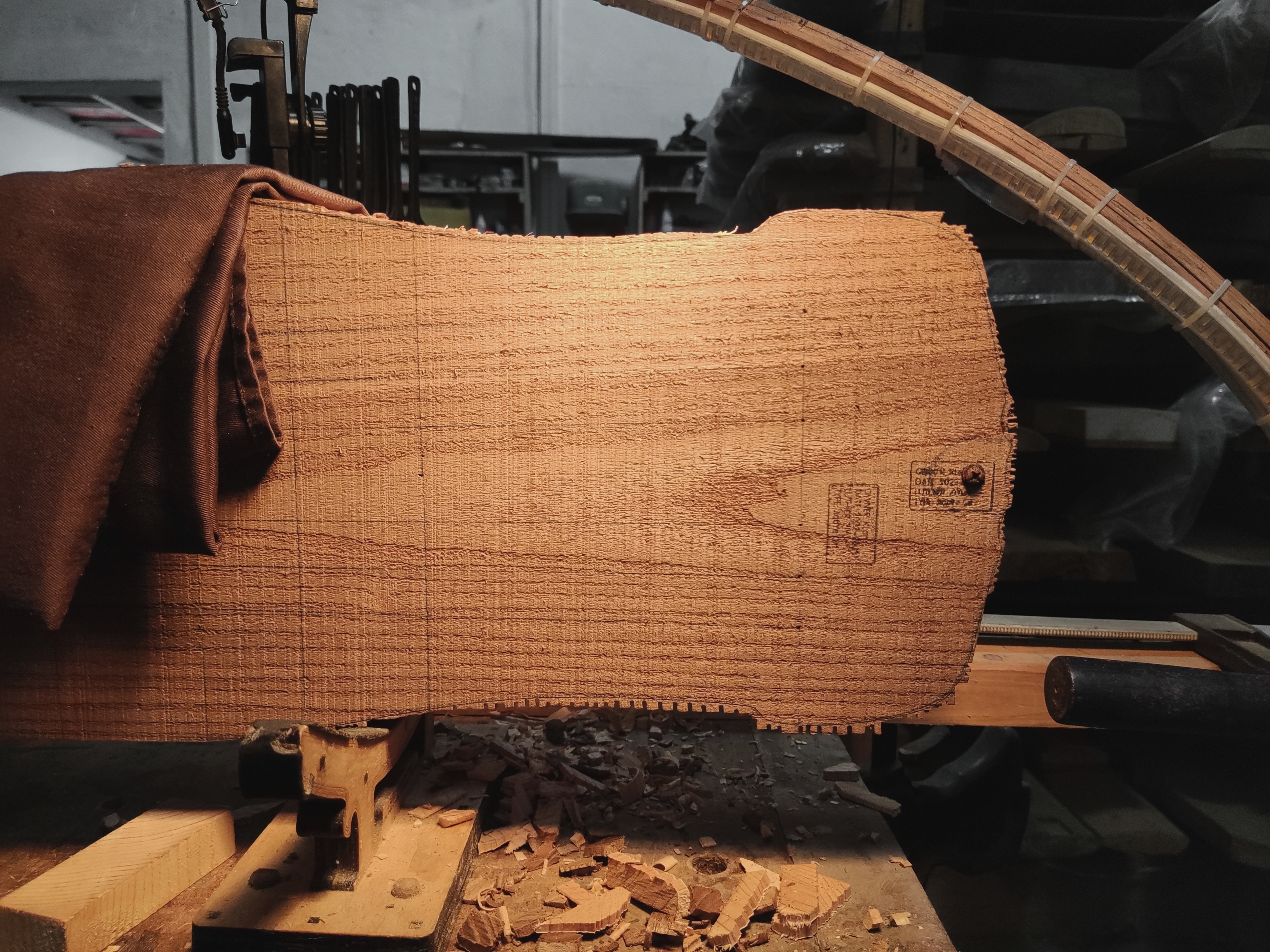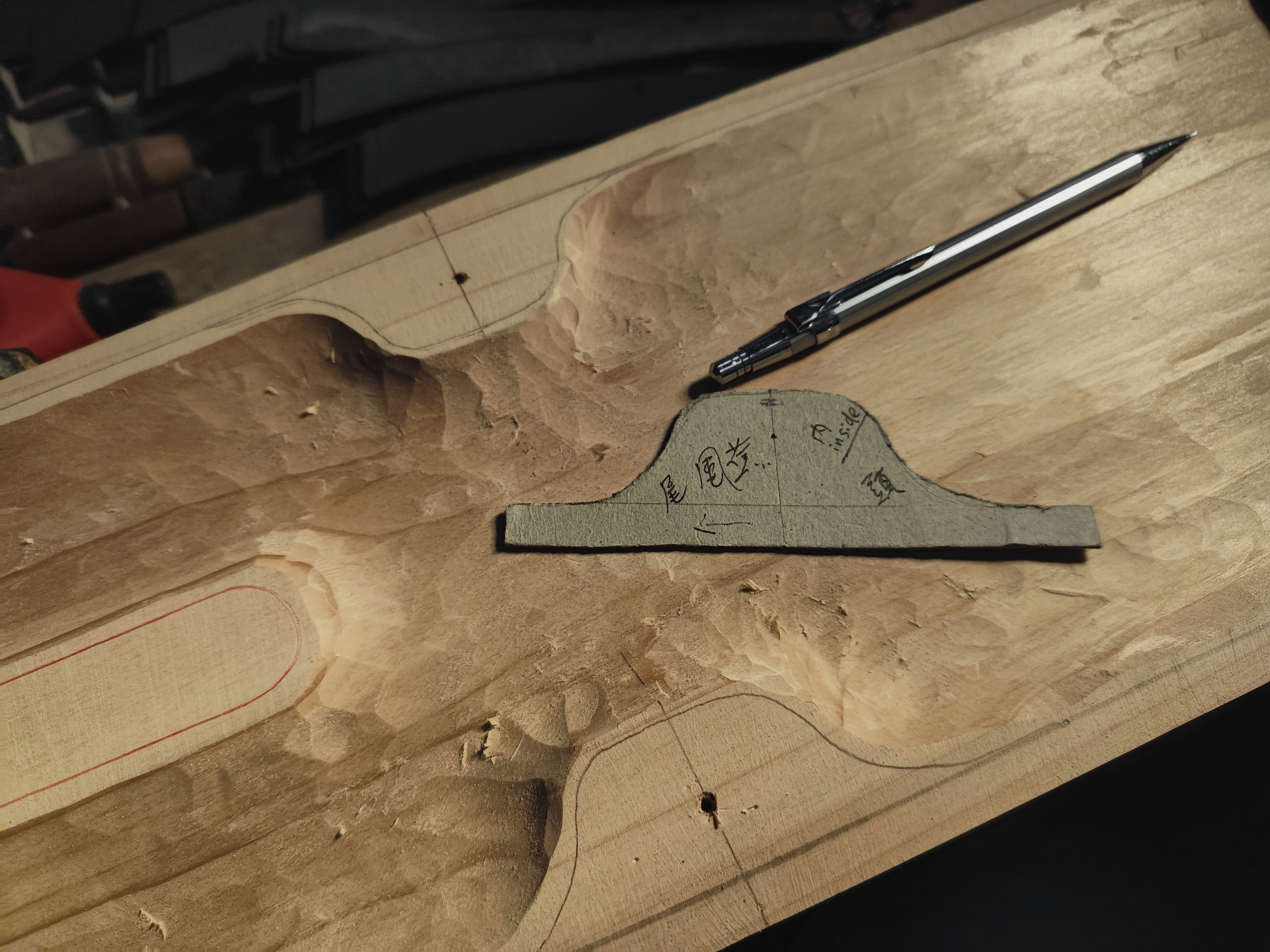 “萬丈高樓平地起”;古琴斲制亦是如此,在板材上勾勒輪廓是決定一張古琴外在形態的關鍵也更是對琴理解之基本功。歷經上下二千五百年的發展,尤其在內部結構佈局方面也至少擁有近兩千年之迭代與優化。