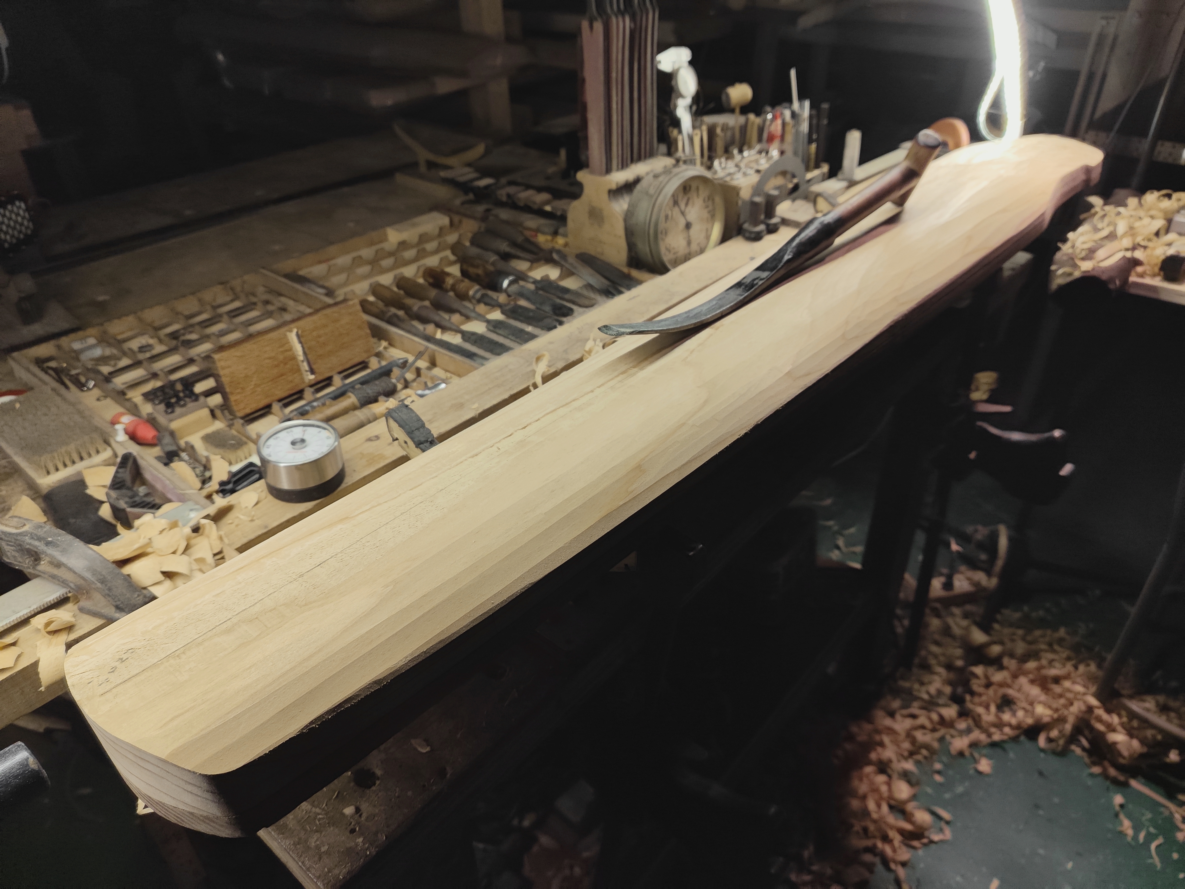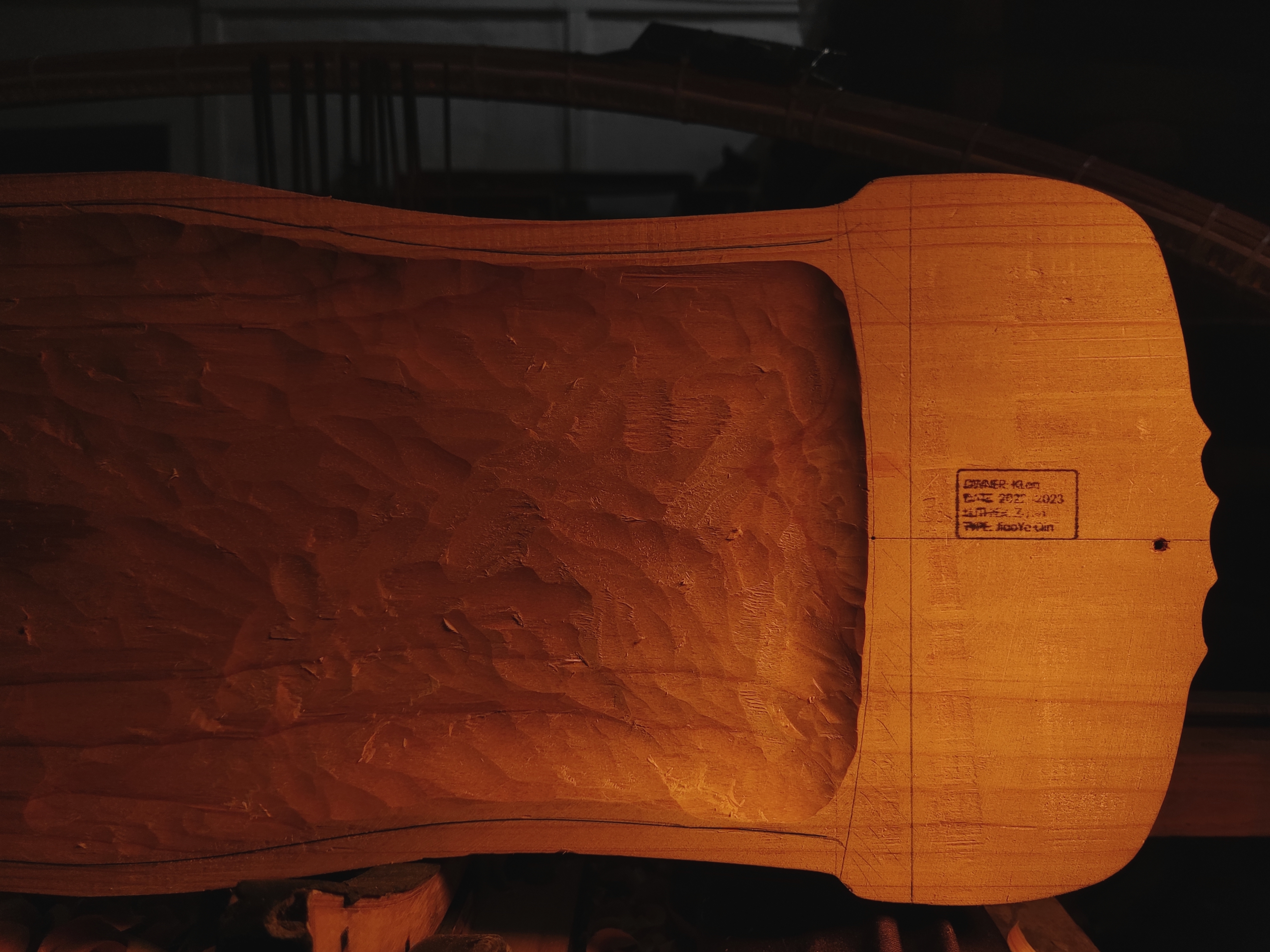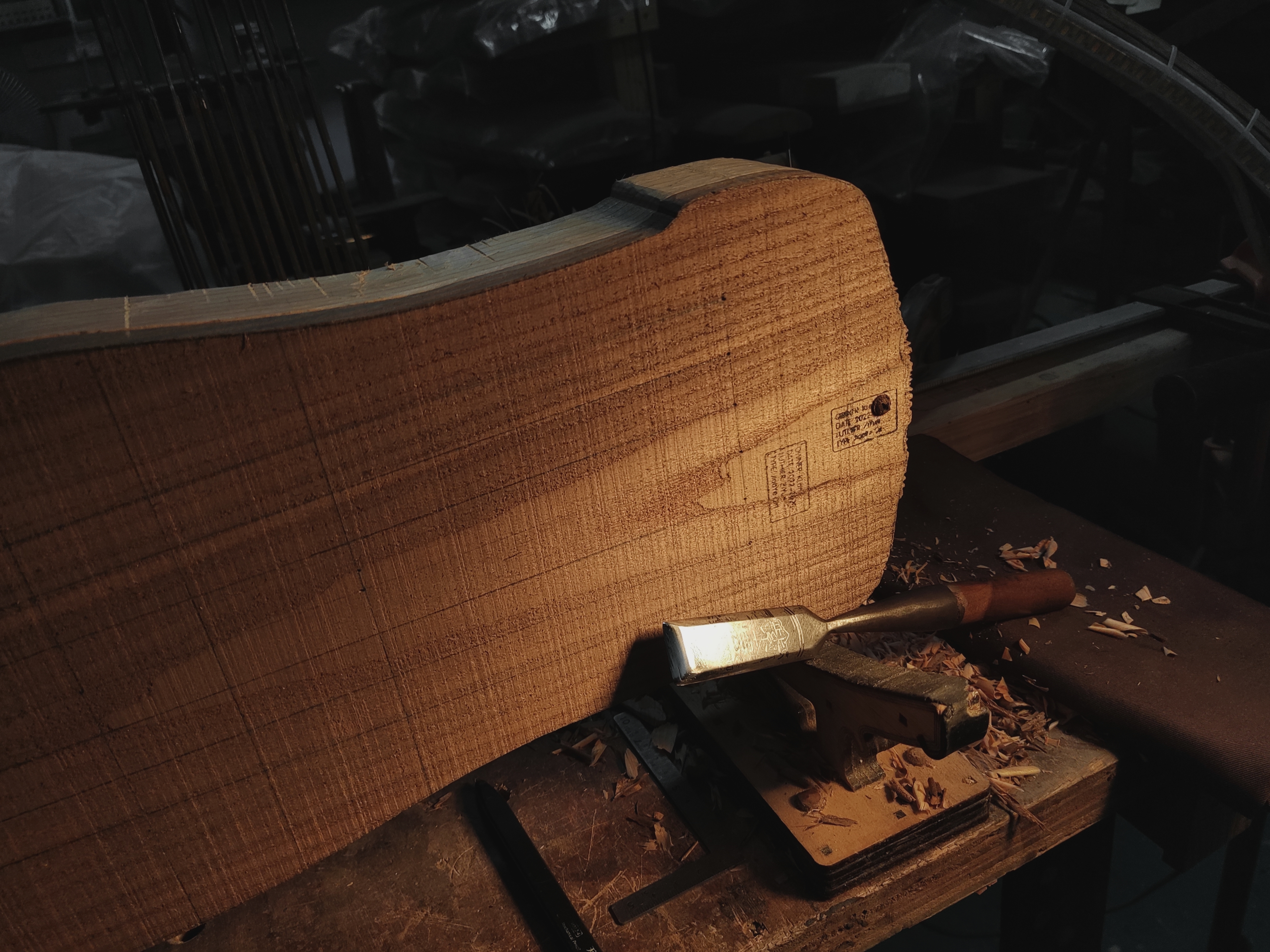 “萬丈高樓平地起”;古琴斲制亦是如此,在板材上勾勒輪廓是決定一張古琴外在形態的關鍵也更是對琴理解之基本功。歷經上下二千五百年的發展,尤其在內部結構佈局方面也至少擁有近兩千年之迭代與優化。