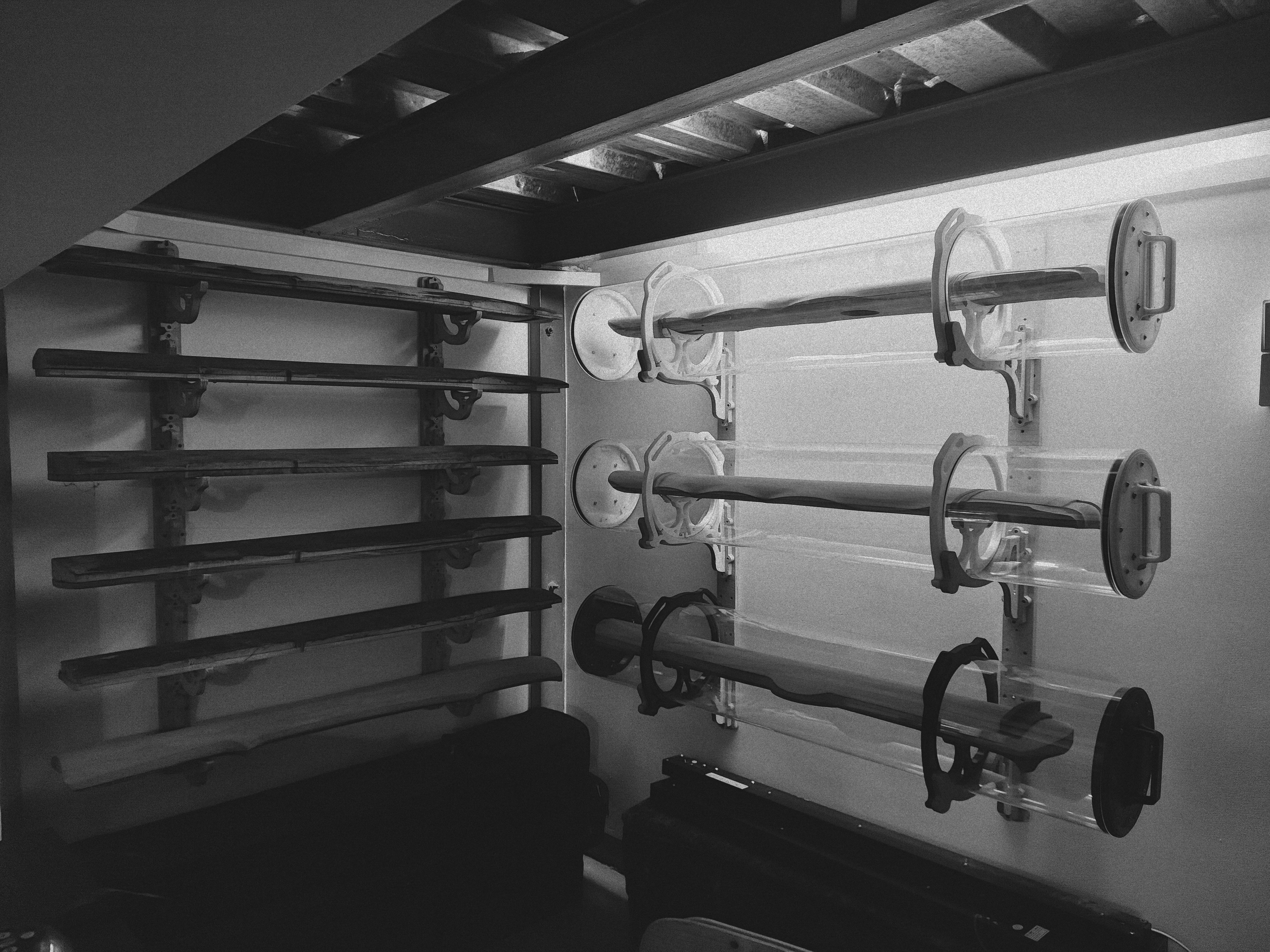鐵器器因為濕度、觸摸鹹汗、高含氧空氣、粉塵等條件而導致短短三日就可以快速鏽蝕,雖然單單幾把利刃可以日常養護到位,但再放眼到陳列整齊之刀架卻反而應接不暇。